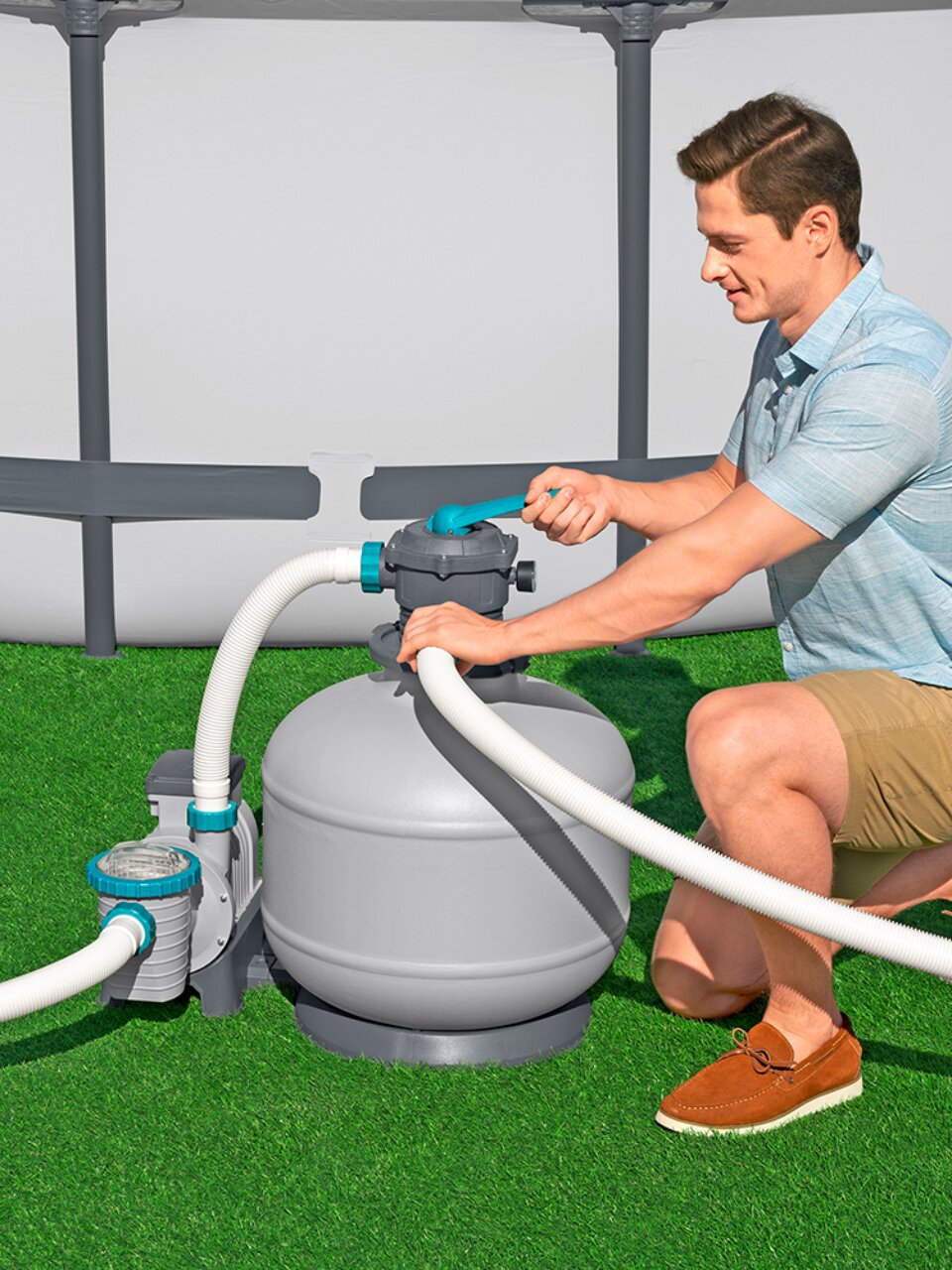 Предназначен для складных бассейнов, нельзя использовать со стационарными бассейнами.