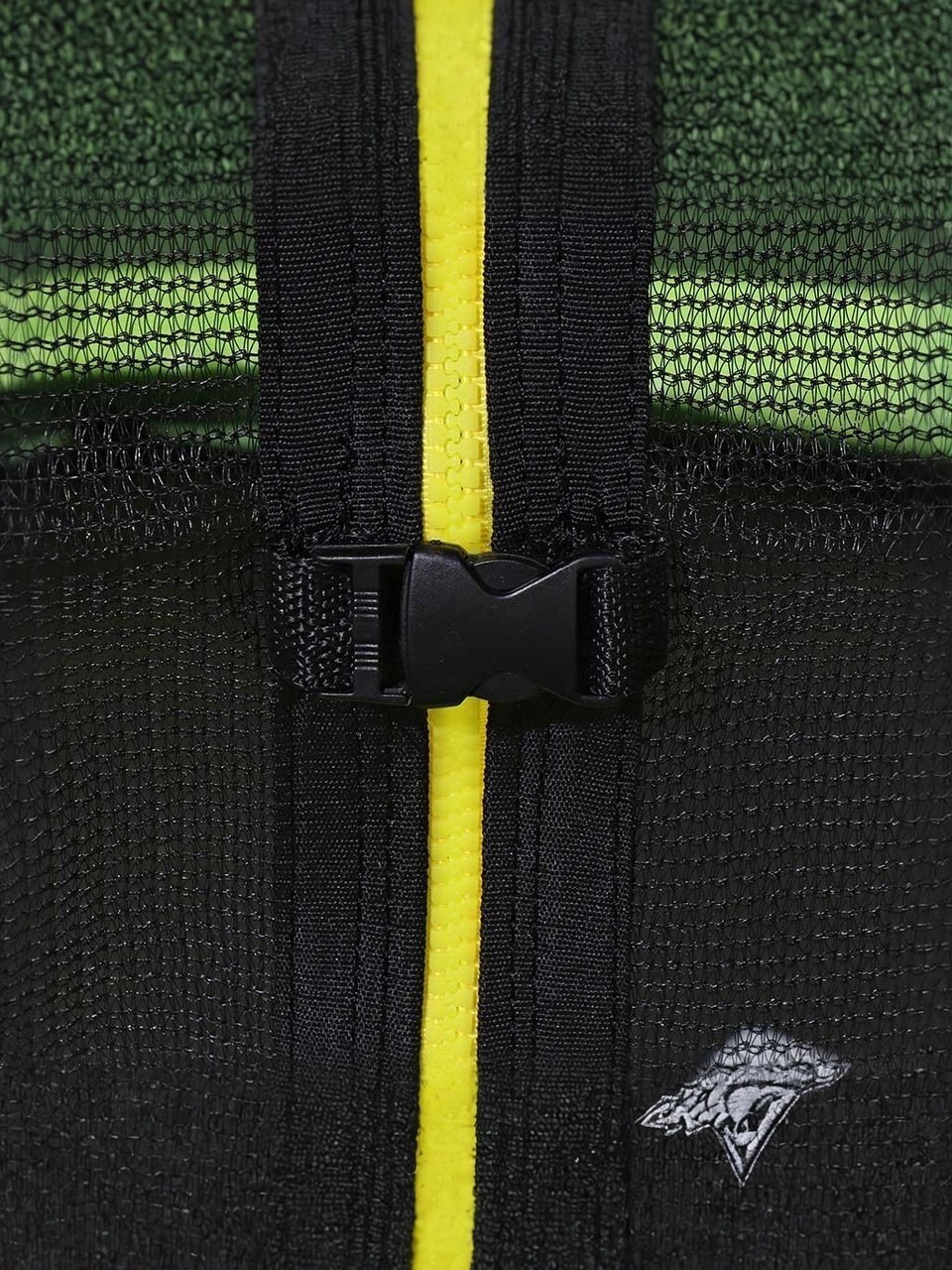 Защитная сеть входит в обязательную комплектацию батутов. Сетка батута устойчива к УФ полиэтиленовая сетка 100г/кв.м. Инновационное крепление увеличивает рабочее пространство батута, исключает соприкосновение с пружинным механизмом, все элементы крепления закрыты мягким матом или выполнены из безопасных материалов. Вход на усиленной молнии, оборудован дополнительными фиксаторами, защищен от случайного открывания.