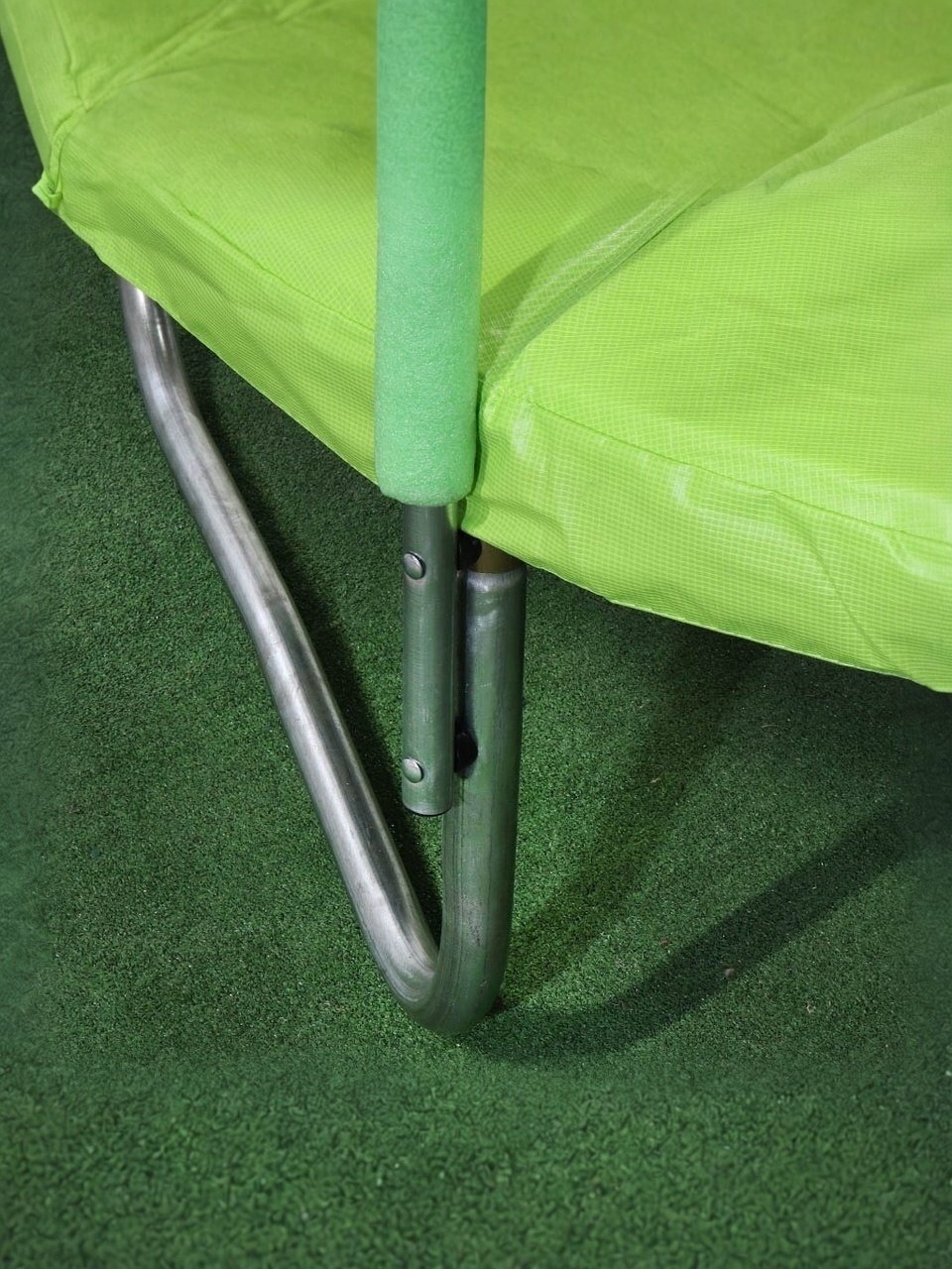 Конструкция для обеспечения безопасности выполнена из стали, диаметр стальных труб 38 мм, толщина металла 1,2 мм. В конструкции 3 опоры (ноги) из стали диаметром 38 мм, толщина металла 1,1 мм. Дуги сбоку из стали диаметром 25 мм, толщина металла 1,1 мм, покрытые защитным материалом ПВХ 310 г/м+вспененный полиэтилен 10 мм, количество дуг - 6. Пружины 42 шт диаметром 3х130 мм.
