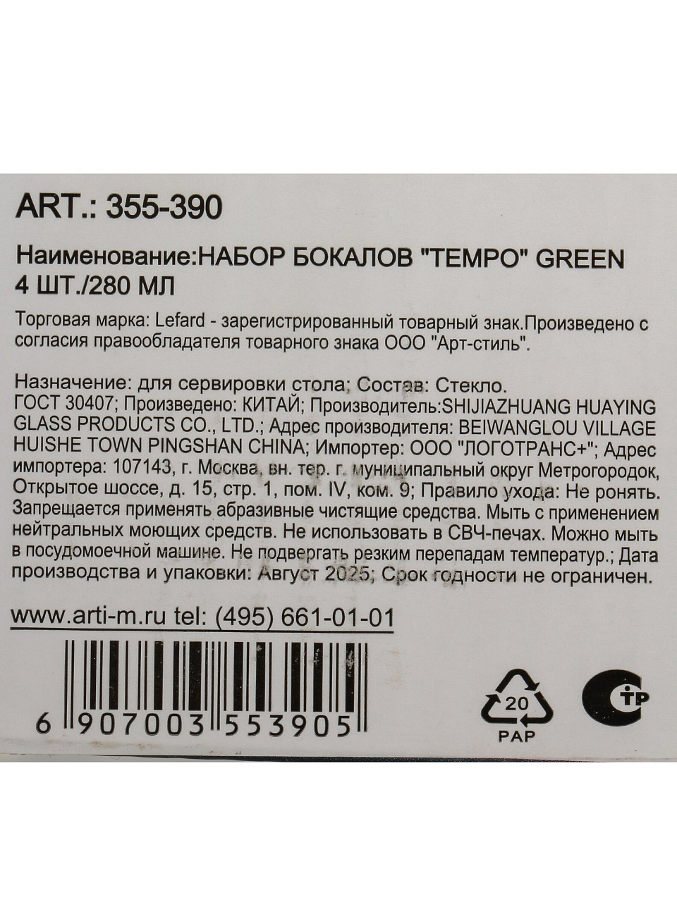 Выбирайте бокалы Lefard Tempo Green — выгодно заказывайте онлайн и получайте гарантированное качество с быстрой доставкой. Сделайте свой стол ярче уже сегодня!