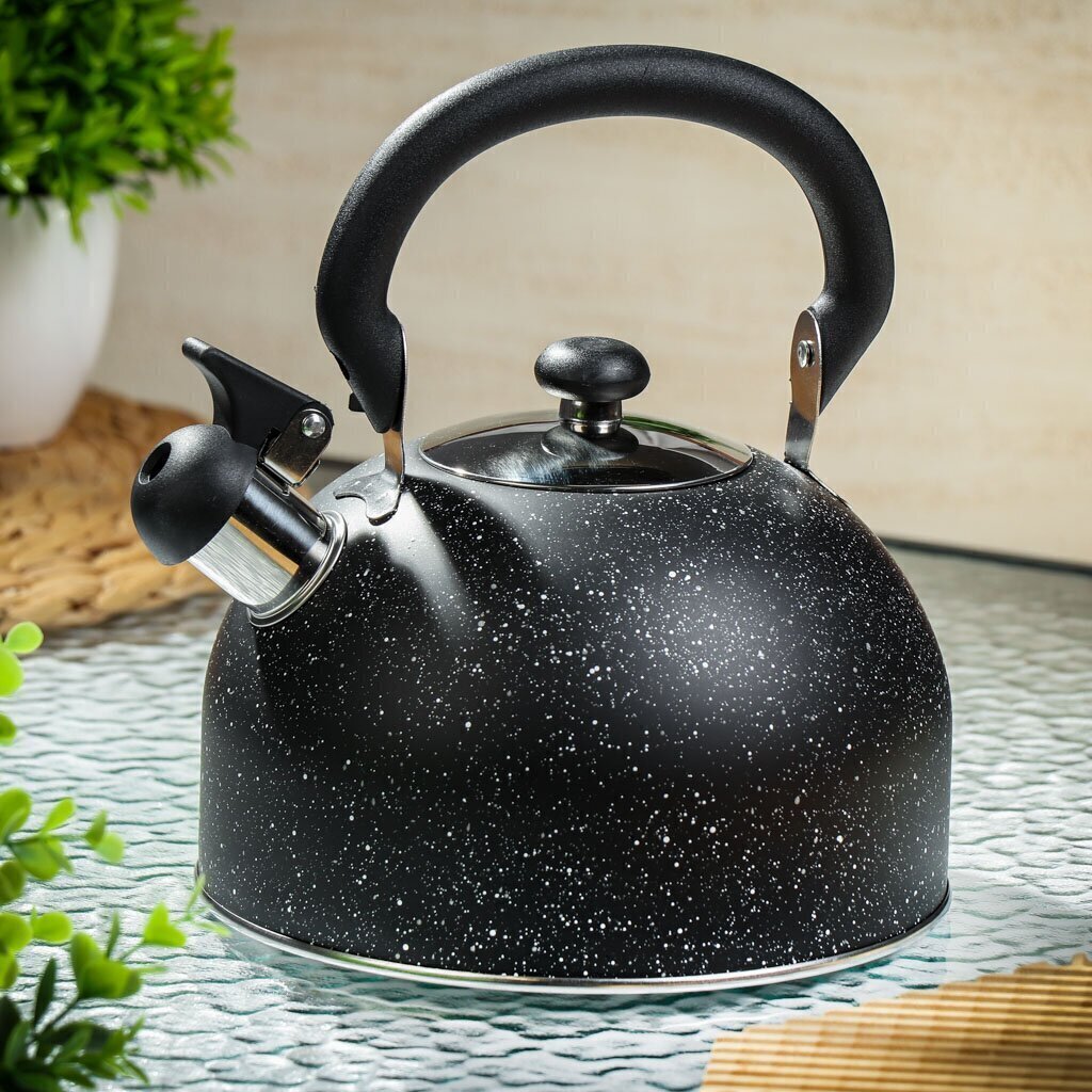 Чайник Daniks 2.8 л из нержавеющей стали: стильный матовый дизайн «черный мрамор», свисток, подходит для индукции и любых плит. Надежно, выгодно, удобно.