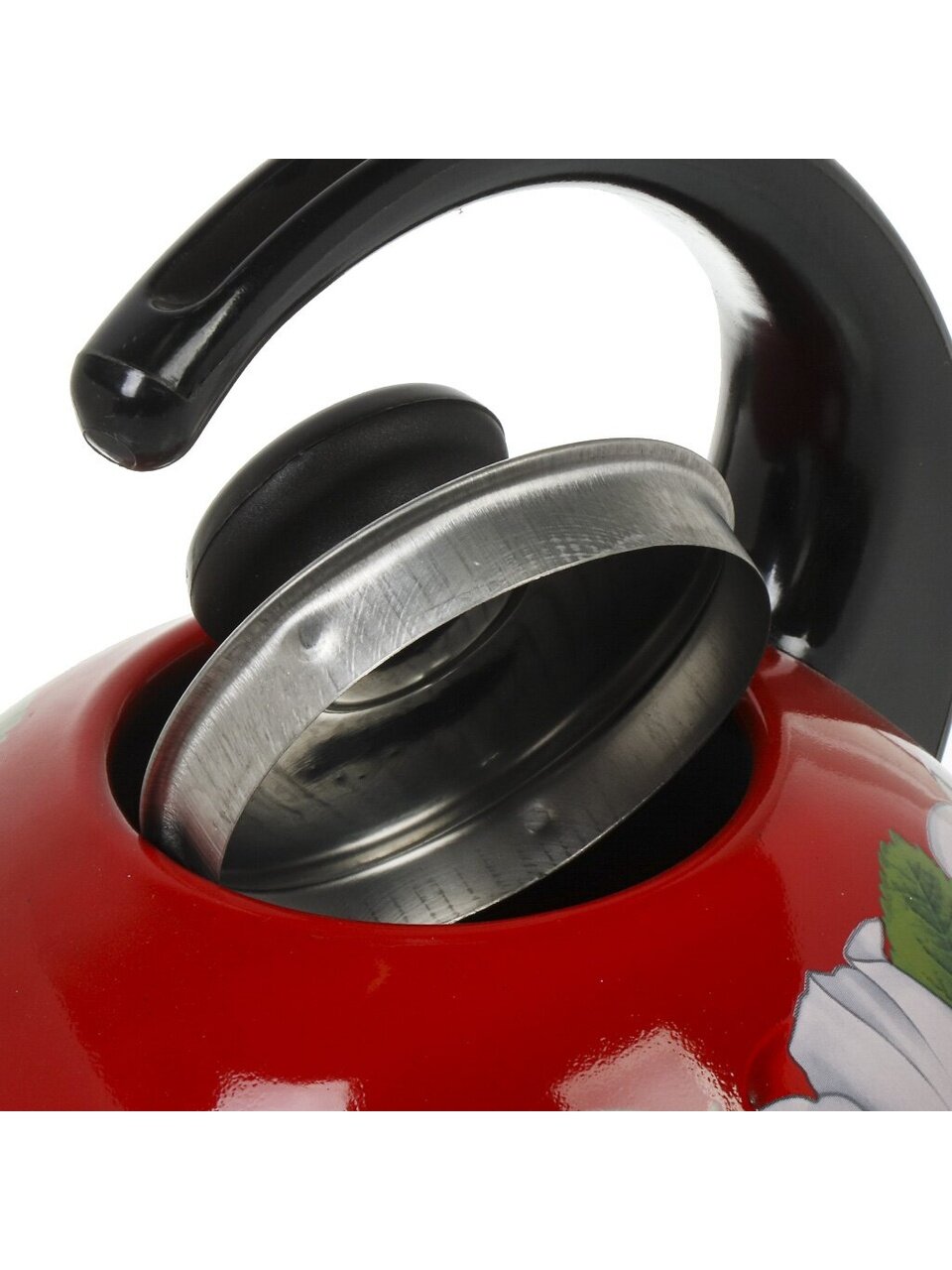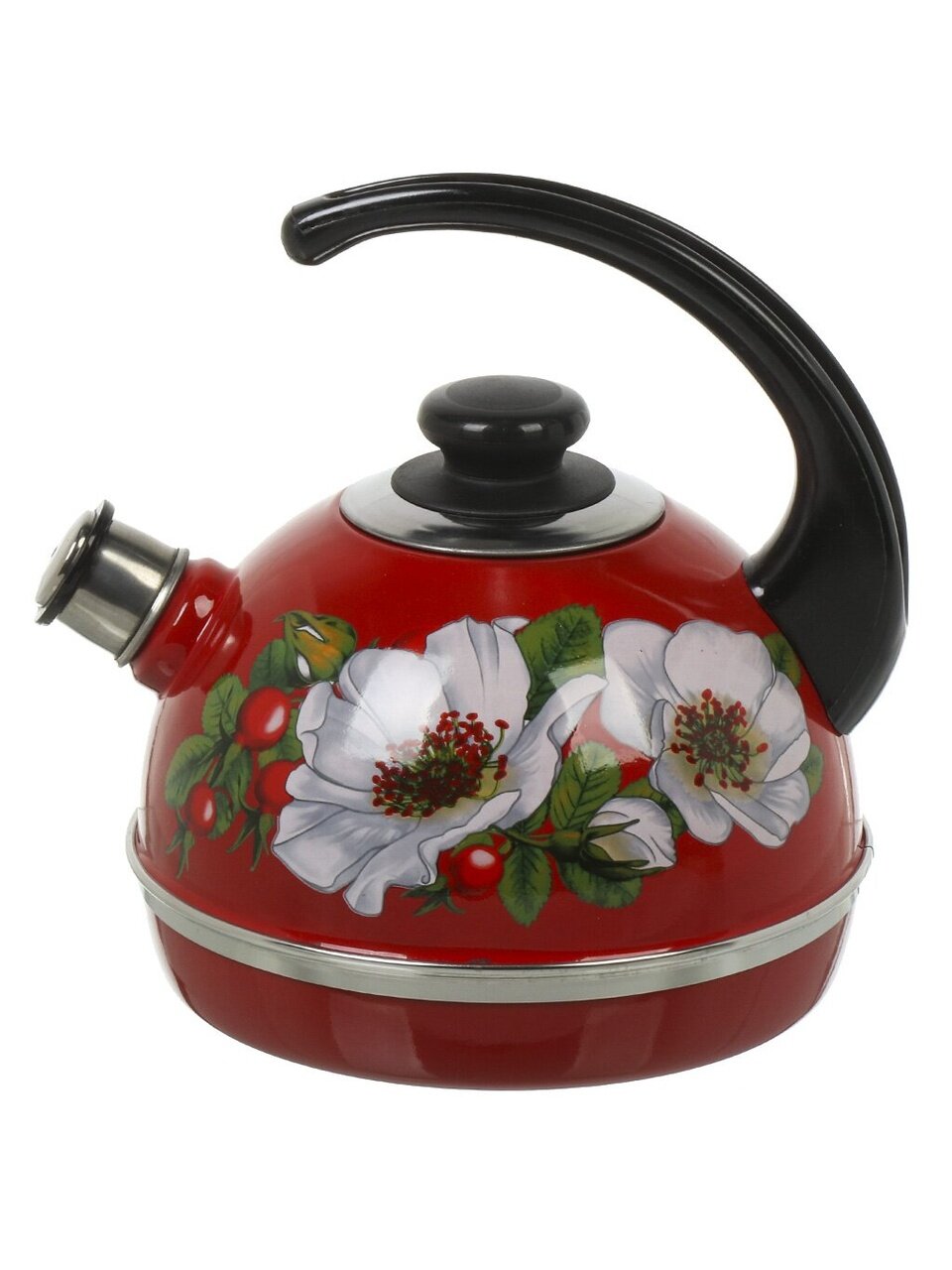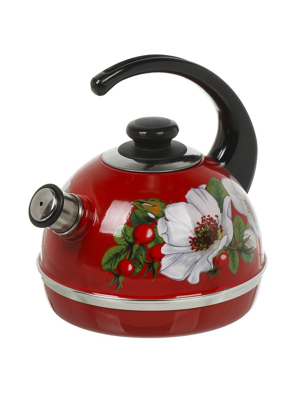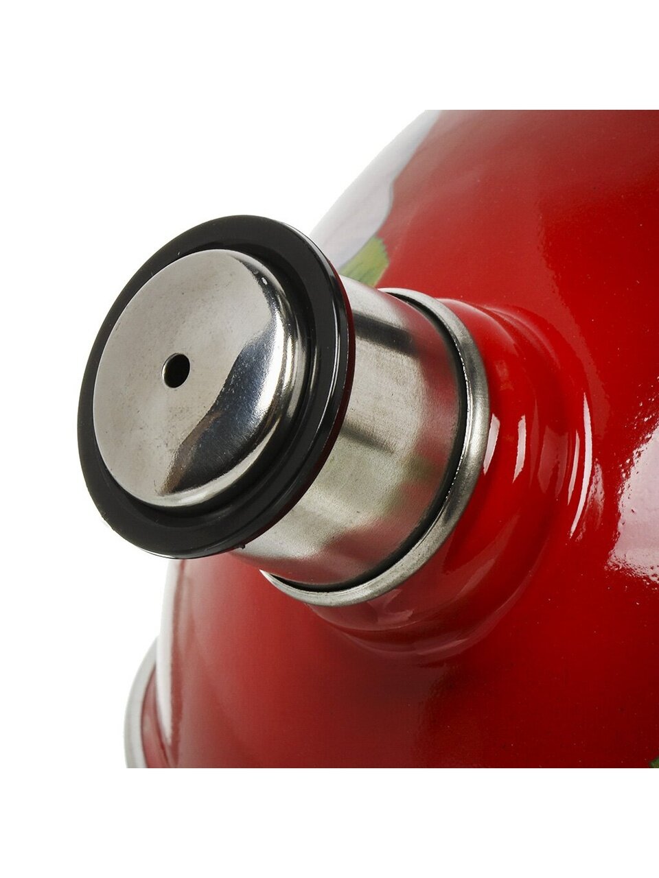 Многие спрашивают: чем отличается эмалированный чайник от обычного металлического? Эмалированная сталь не впитывает запахи, не вступает в реакцию с водой, а стильный бордовый цвет и декор украсят любой интерьер. Чайник со свистком оповестит о закипании, что удобно на кухне и в загородном доме. В отличие от дорогих моделей, этот чайник — оптимальный выбор для тех, кто ищет недорогой, но качественный вариант. Не подходит для индукционных плит, зато совместим с большинством популярных типов плит.