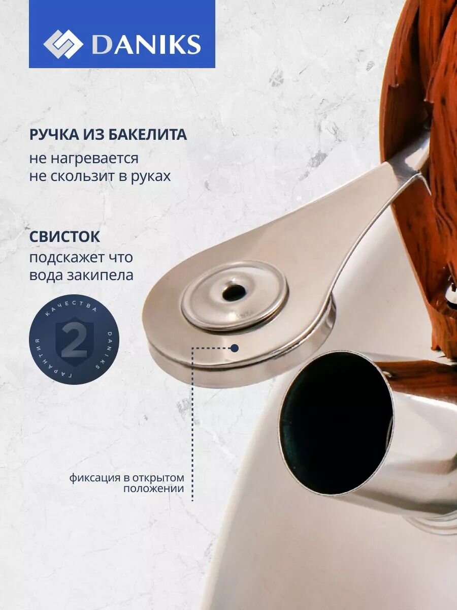 Чайник из нержавеющей стали Daniks 2.7 л: надежный выбор для дома и дачи, подходит для всех плит, включая индукцию. Эргономика и долговечность по доступной цене.
