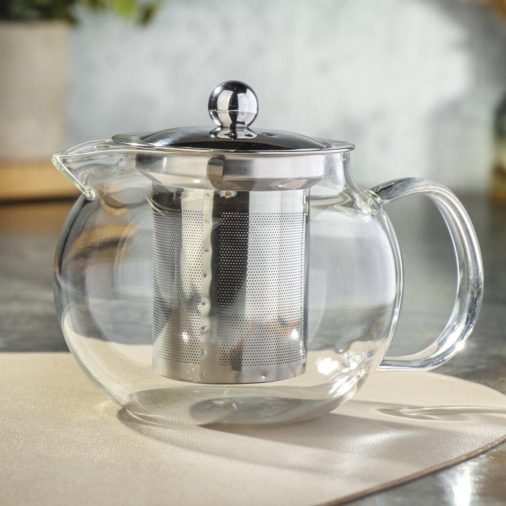 Чайник заварочный можно использовать для заваривания как чая, так и различных травяных настоев, а удобная крышка поддержит нужную температуру. Изделие изготовлено по современной технологии из высокопрочного стекла. Материал чайника отличается износоустойчивостью и легкостью, не впитывает запахи, прост в использовании и мойке. Сетчатый фильтр не позволит чаинкам или мелким частям отвара попасть в напиток. Прозрачный корпус позволяет контролировать процесс заваривания, чтобы получить напиток желаемой крепости.