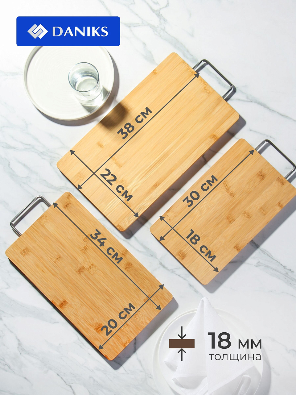 Вы можете приобрести «Доска разделочная бамбук, 38х22х1.8, 34х20х1.8, 30х18х1.8см, 3 шт, с ручкой, прямоугольная, CB730S4B» и другие товары в нашем интернет-магазине в Тамбове по низким ценам и с бесплатным самовывозом.