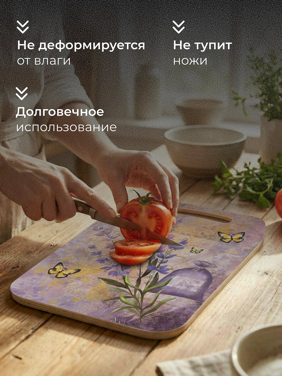 Важным преимуществом доски является ее безупречный размер и толщина. Рабочая площадь достаточно большая, чтобы с легкостью и удобством заниматься резкой.