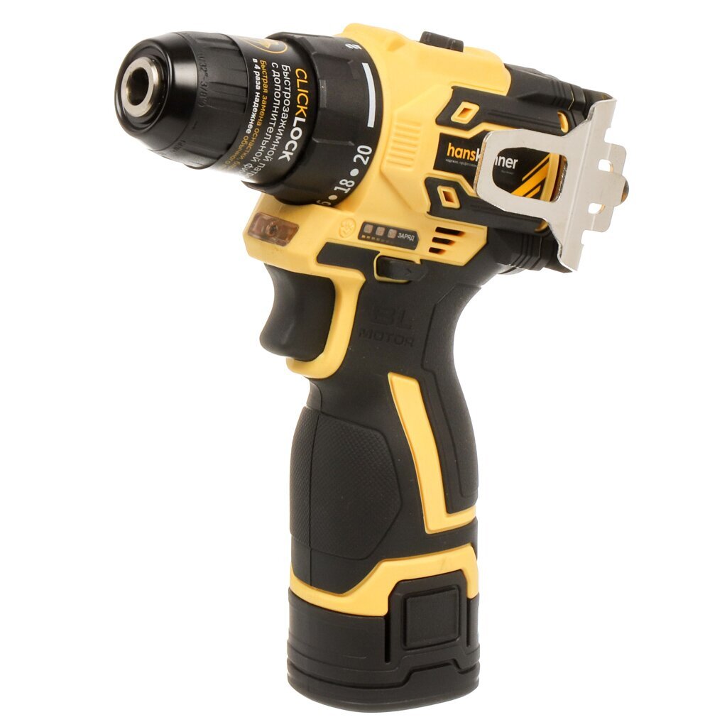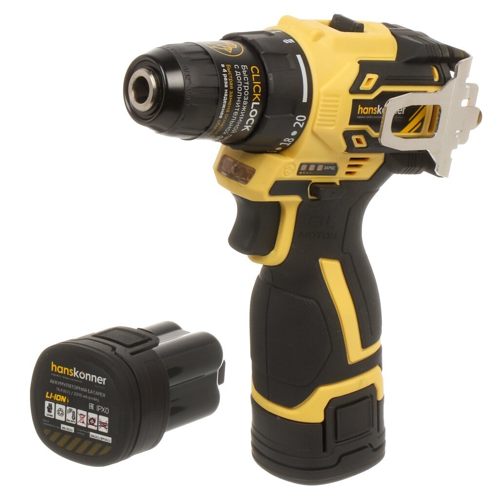 - Бесщеточный двигатель аккумуляторной дрели-шуруповерта Hanskonner обеспечивает снижение веса и размеров инструмента, повышение мощности и продолжительности работы, а также увеличение ресурса.
