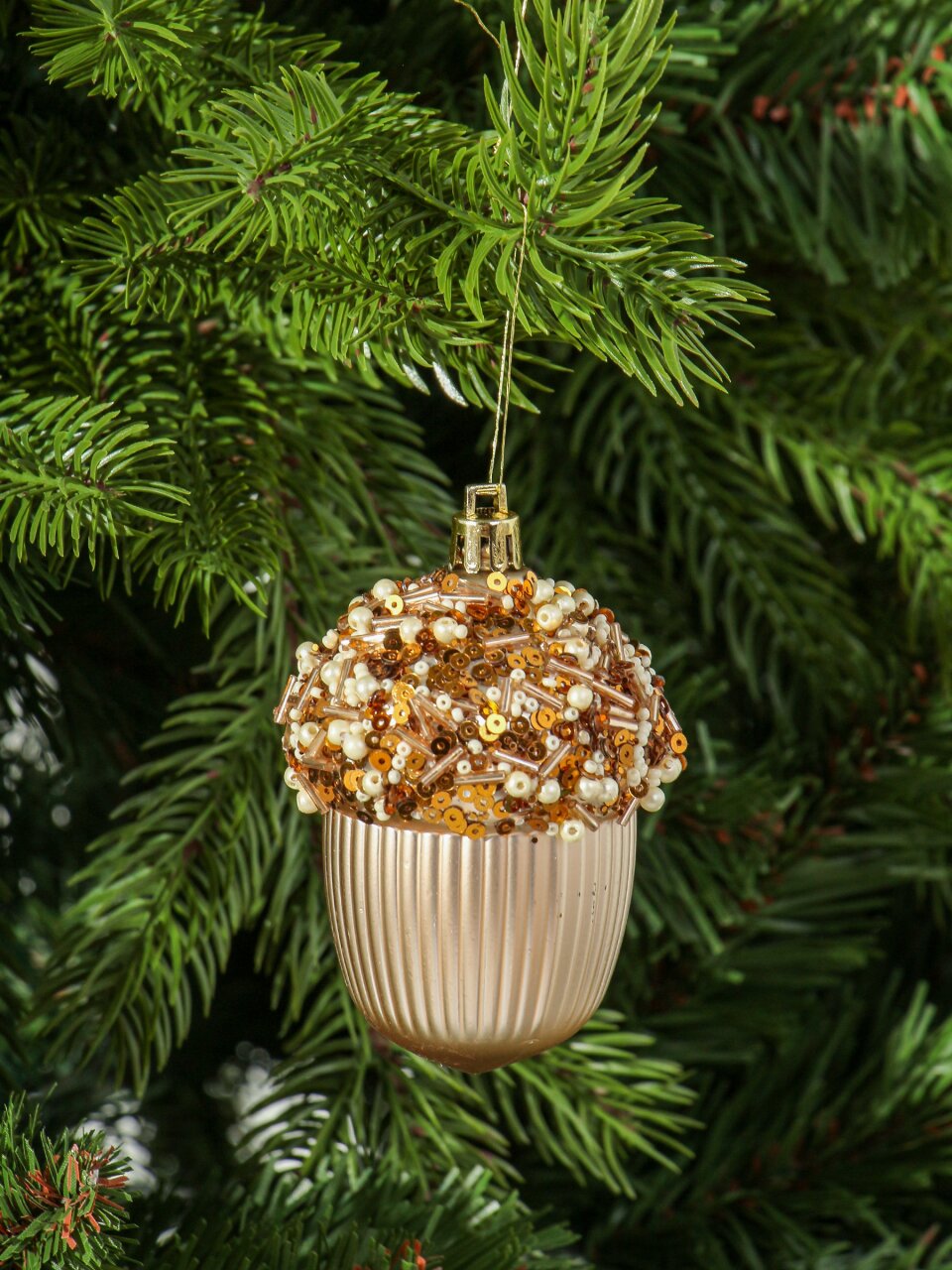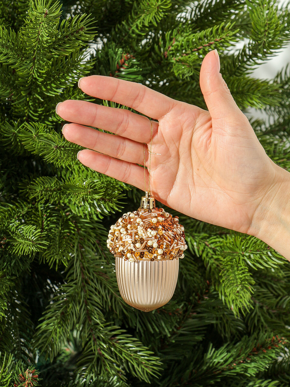- Уникальный дизайн "Желуди" — акцент на модные оттенки кофе и шампань для стильной елки