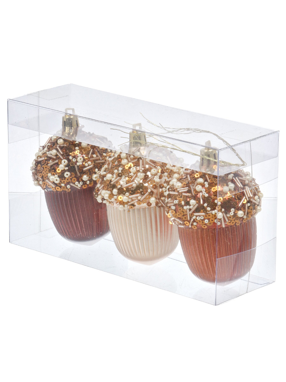 Набор елочных украшений "Желуди" (3 шт, кофе, шампань, 9х6 см, пластик) — стильное решение для уютного и безопасного новогоднего декора дома или дачи. Прочный пластик, трендовые цвета, небьющаяся конструкция.