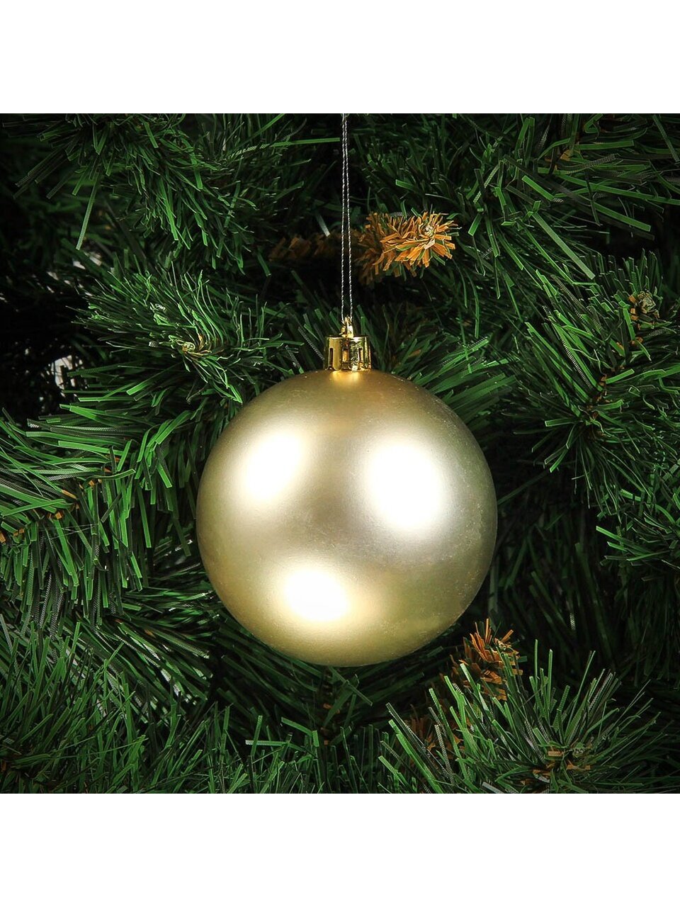 Каждый шар оснащен прочной подвеской, что облегчает размещение на ветках ели. Материал — ударопрочный пластик, блестящее покрытие, размер 8 см.
