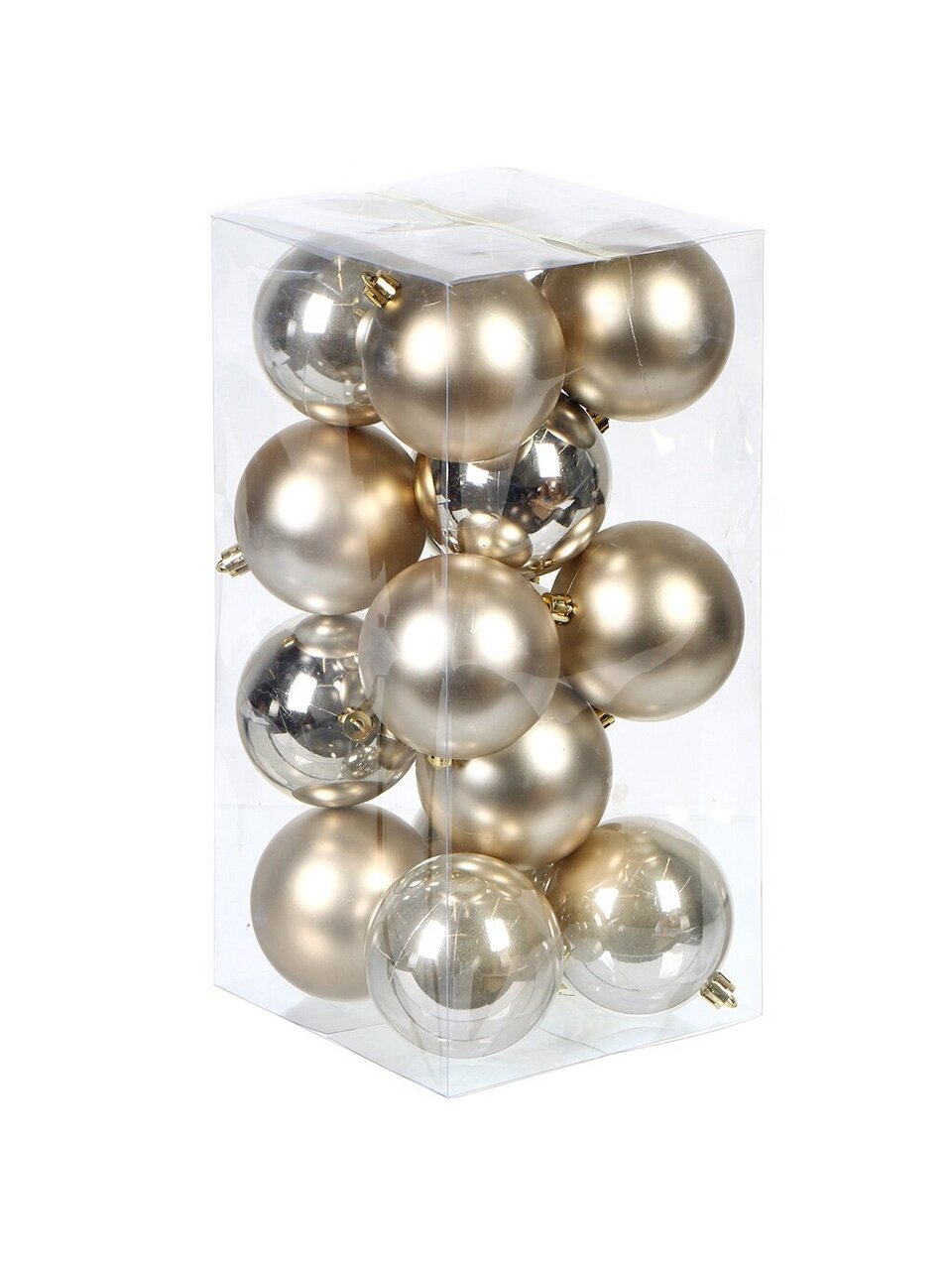 Елочные шары 16 шт, шампань жемчужный, 8 см — стильный набор для украшения дома, дачи или офиса. Безопасный пластик, эффектное покрытие, выгодная цена.