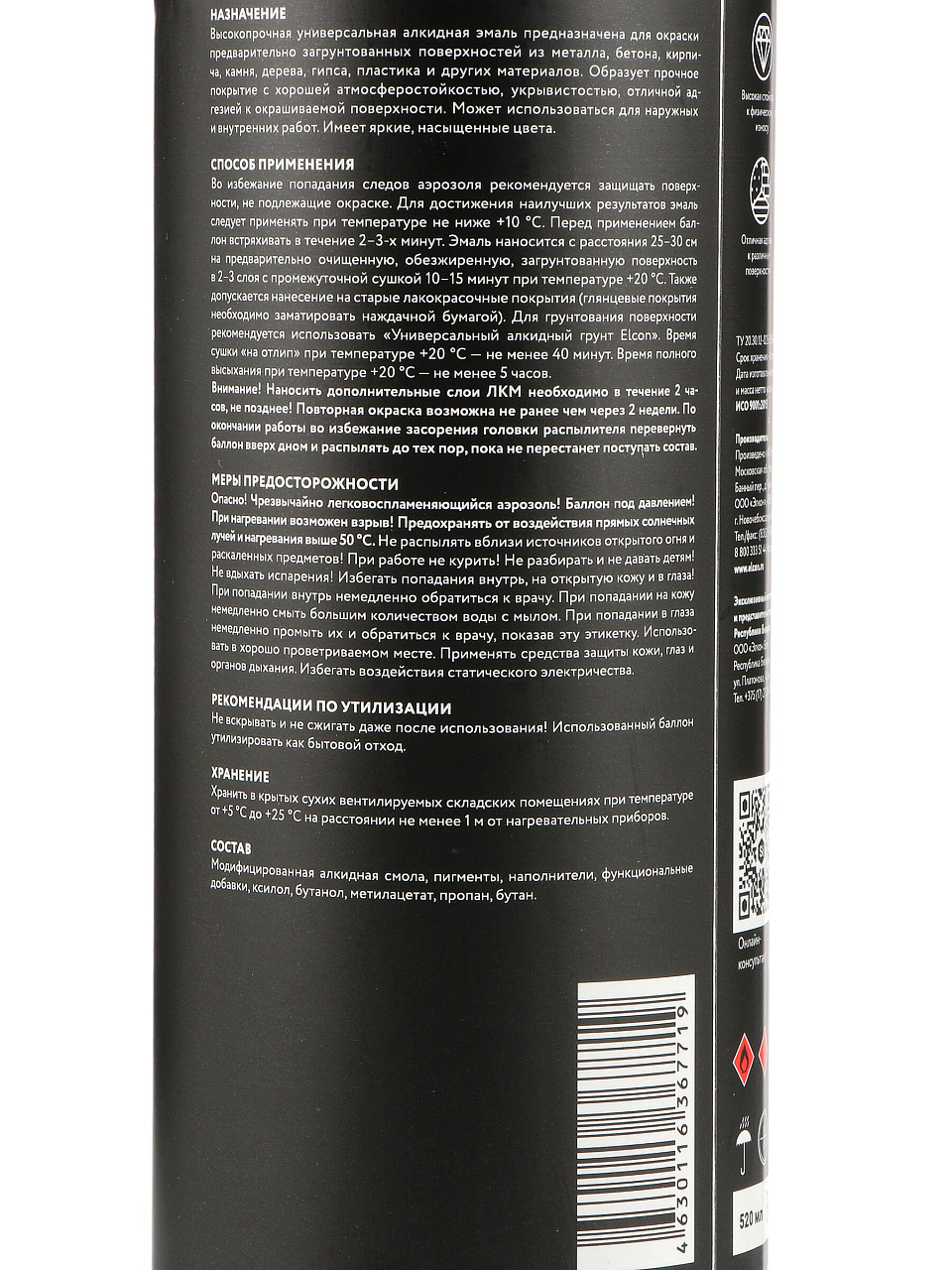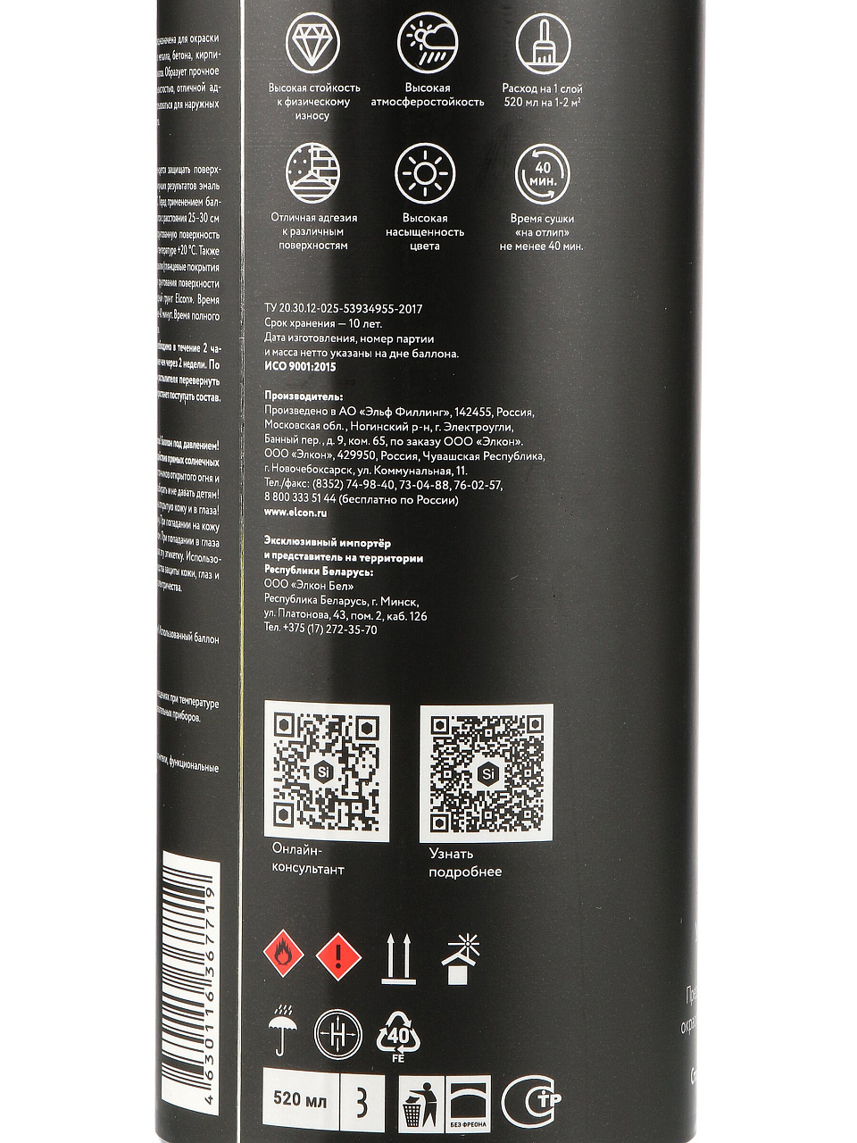 Эмаль аэрозоль Elcon RAL 9005: универсальное матовое покрытие для надёжной защиты и стильного обновления любых поверхностей — 520 мл для дома и дачи.