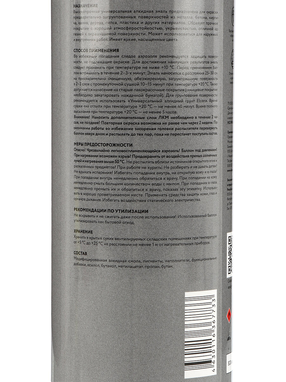 Как использовать? Просто встряхните баллон и равномерно нанесите на чистую сухую поверхность; подходит для обновления мебели, декора, ограждений, техники. Благодаря универсальной формуле и глянцевому блеску изделие приобретает современный вид и надежную защиту.