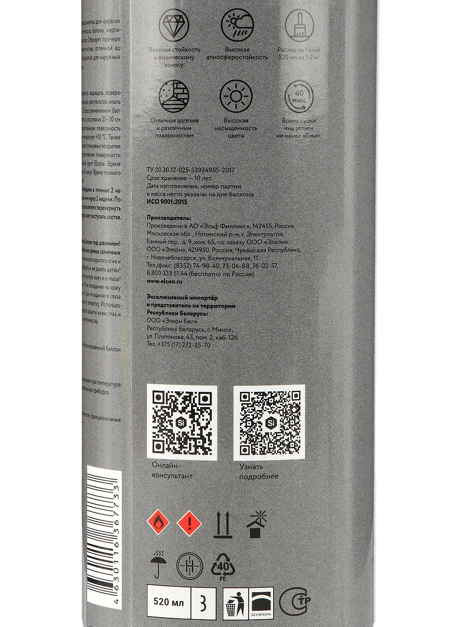 Вы можете приобрести «Эмаль аэрозольная, Elcon, универсальная, алкидная, глянцевая, серая, RAL 7040, 520 мл» и другие товары в нашем интернет-магазине в Обнинске по низким ценам и с бесплатным самовывозом.