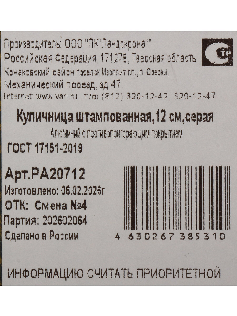 - Оптимальный диаметр 12 см, штампованный жаропрочный алюминий — легкость, прочность, равномерный прогрев.