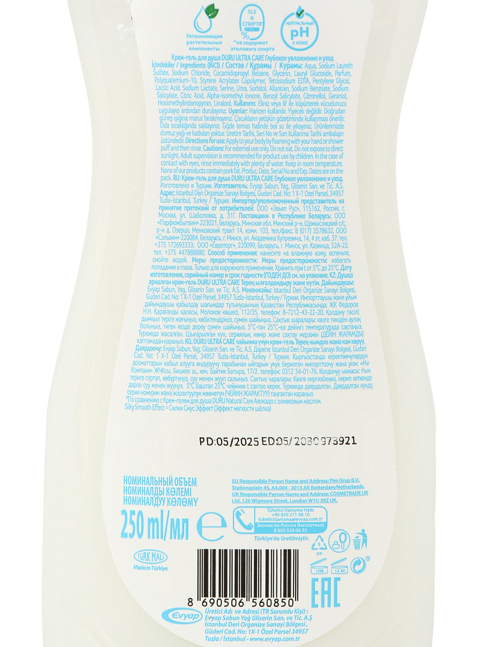 Если сравнивать с аналогами, Duru Ultra Care выигрывает за счет сбалансированной формулы: нет агрессивных консервантов, а увлажняющие компоненты работают до 24 часов. Это особенно важно для людей с чувствительной или обезвоженной кожей, ищущих, чем отличается крем-гель от обычного геля для душа.