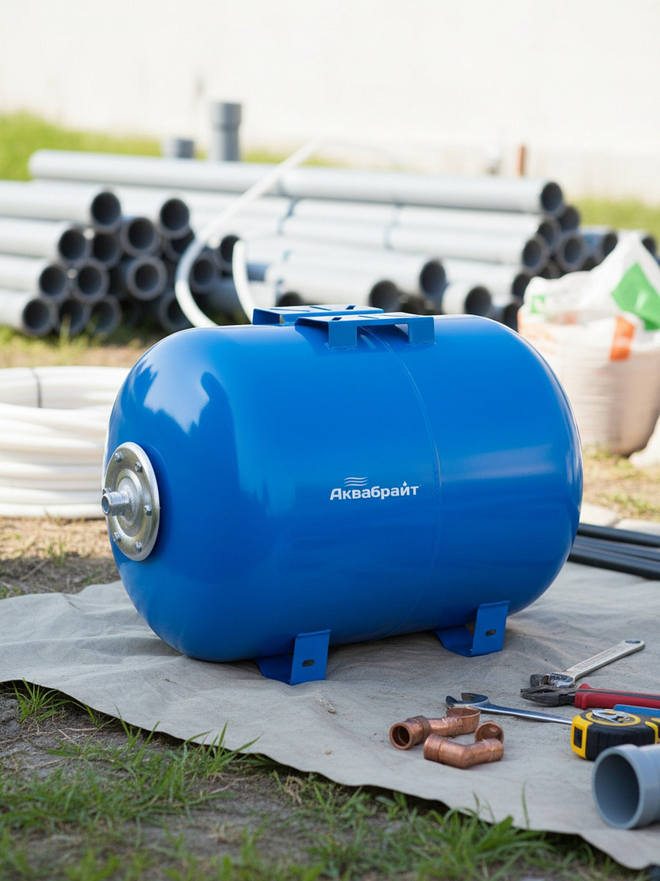 Гидроаккумулятор Аквабрайт горизонтальный предназначен для систем холодного и горячего водоснабжения. Гидроаккумулятор нужен для поддержания оптимального давления в системе водоснабжения, накопления воды и защиты работы насоса от частых пусков, защита от гидроударов. Объем бака - 100 литров.