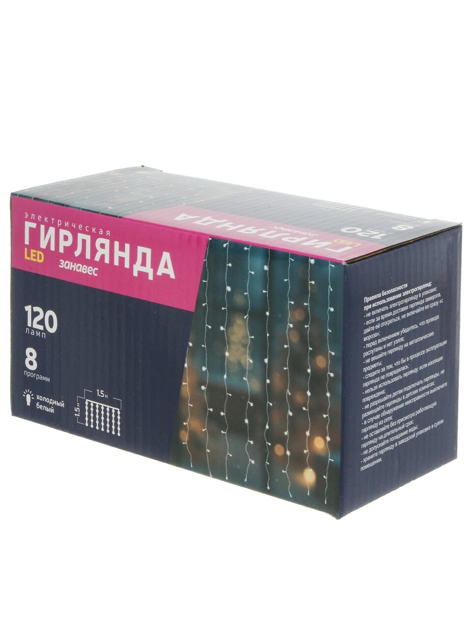 Гирлянда-занавес 120 LED, 1.5×1.5 м, холодный белый свет — эффектное освещение для дома и праздника с 8 режимами и пультом управления
