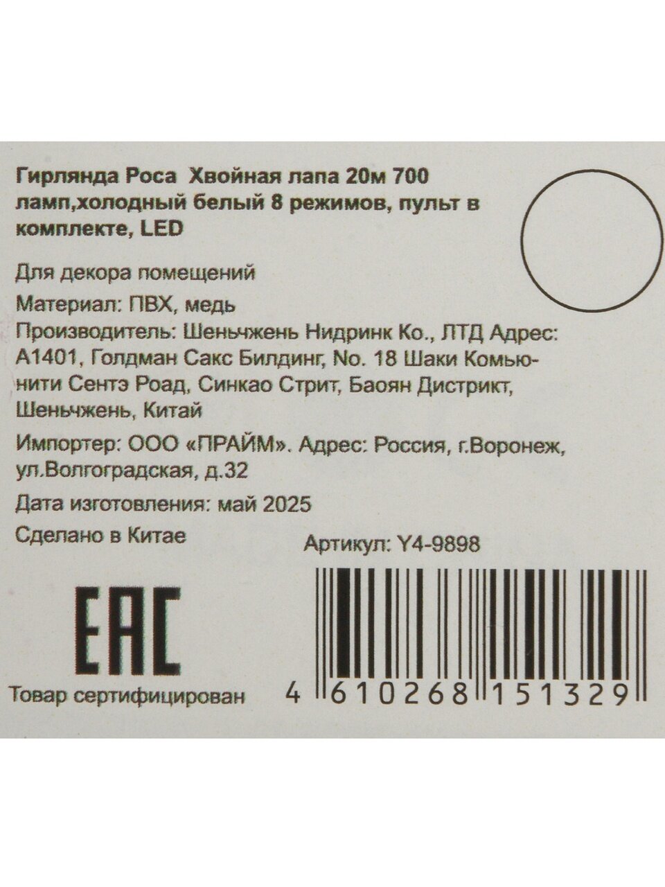 - Плотная засветка: 700 светодиодов на 20 метрах — равномерное сияние даже на больших пространствах