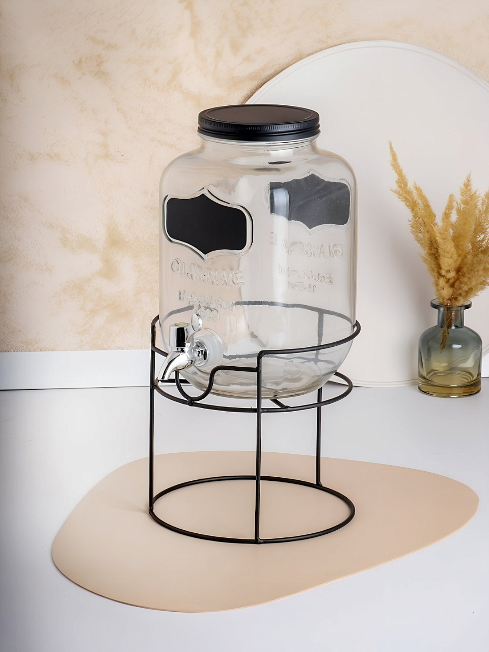 Лимонадница Daniks не только радует глаз, но и приносит практическую пользу. Прозрачное стекло позволяет легко следить за уровнем напитка, а удобная крышка защищает его от загрязнений. Черная металлическая подставка добавляет устойчивости и стиля, делая лимонадницу не только функциональным, но и декоративным элементом. Это идеальное решение для тех, кто ценит качество, стиль и удобство в использовании. Превратите подачу напитков в настоящее искусство и создайте неповторимую атмосферу на вашем столе.