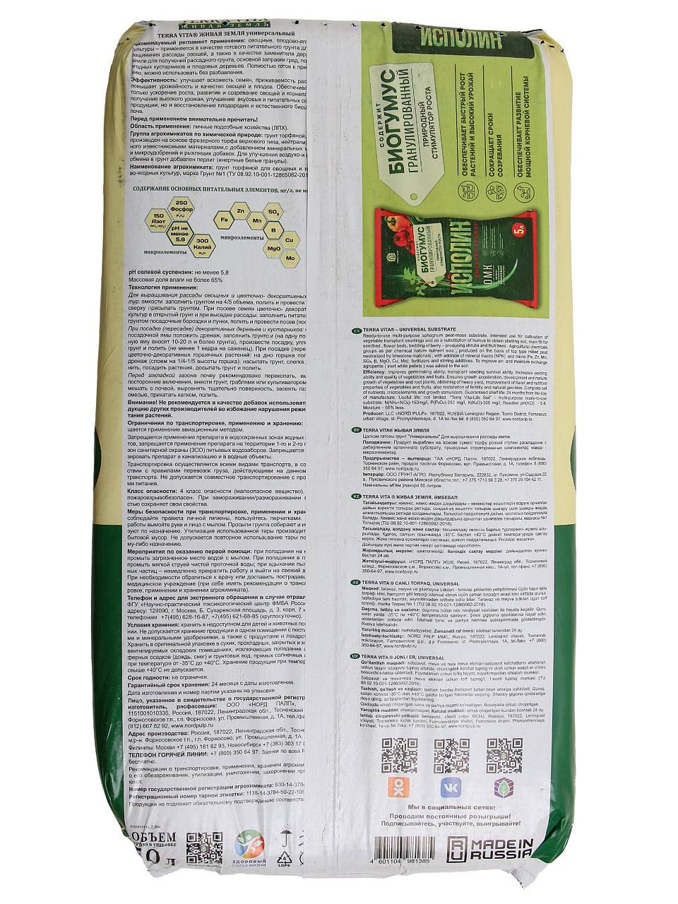 Вы можете приобрести «Грунт Живая земля, универсальный, 50 л, Terra Vita» и другие товары в нашем интернет-магазине в Обнинске по низким ценам и с бесплатным самовывозом.
