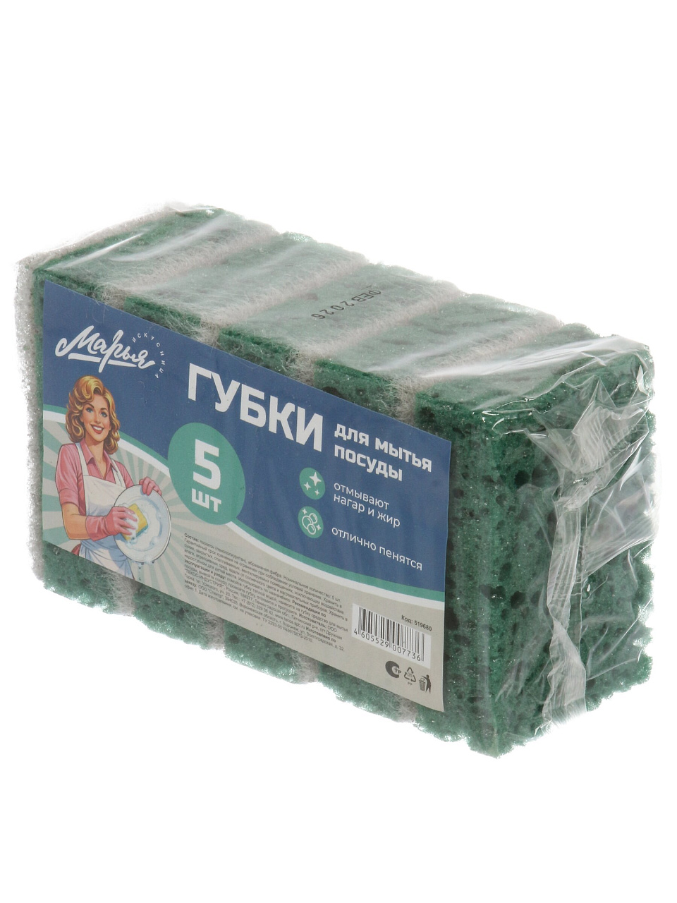 Губка для посуды Марья Искусница, 5 шт: эффективная очистка без царапин, долговечность и экономия — оптимальный выбор для кухни и дачи.