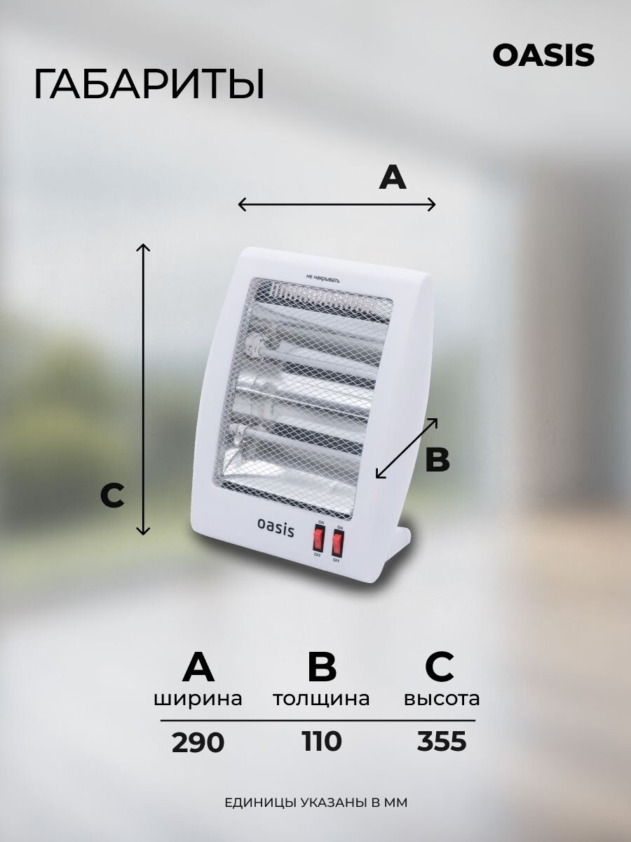 Инфракрасный обогреватель Oasis – это электронагревательный прибор с теплоотдачей преимущественно инфракрасным излучением. Предназначен для основного, дополнительного и местного обогрева бытовых и аналогичных помещений (частные дома, веранды, квартиры, офисы, склады, мастерские, павильоны, небольшие торговые точки и т.п.). Инфракрасное излучение проходит сквозь воздух и обогревает предметы, стены и пол помещения, от которых, в свою очередь, нагревается воздух.