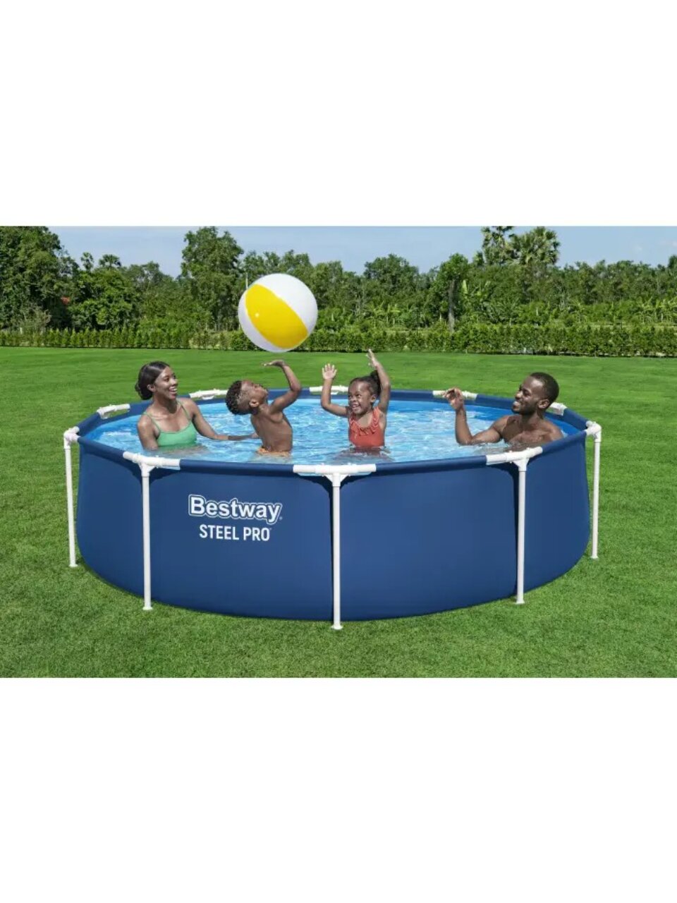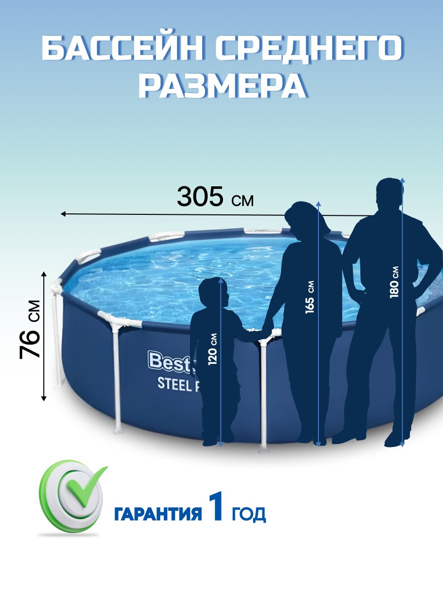 Каркасный бассейн Bestway Steel Pro 305х76 см — идеальное решение для семьи: быстрое охлаждение летом, прочная конструкция, объём 4678 л для полноценного отдыха.