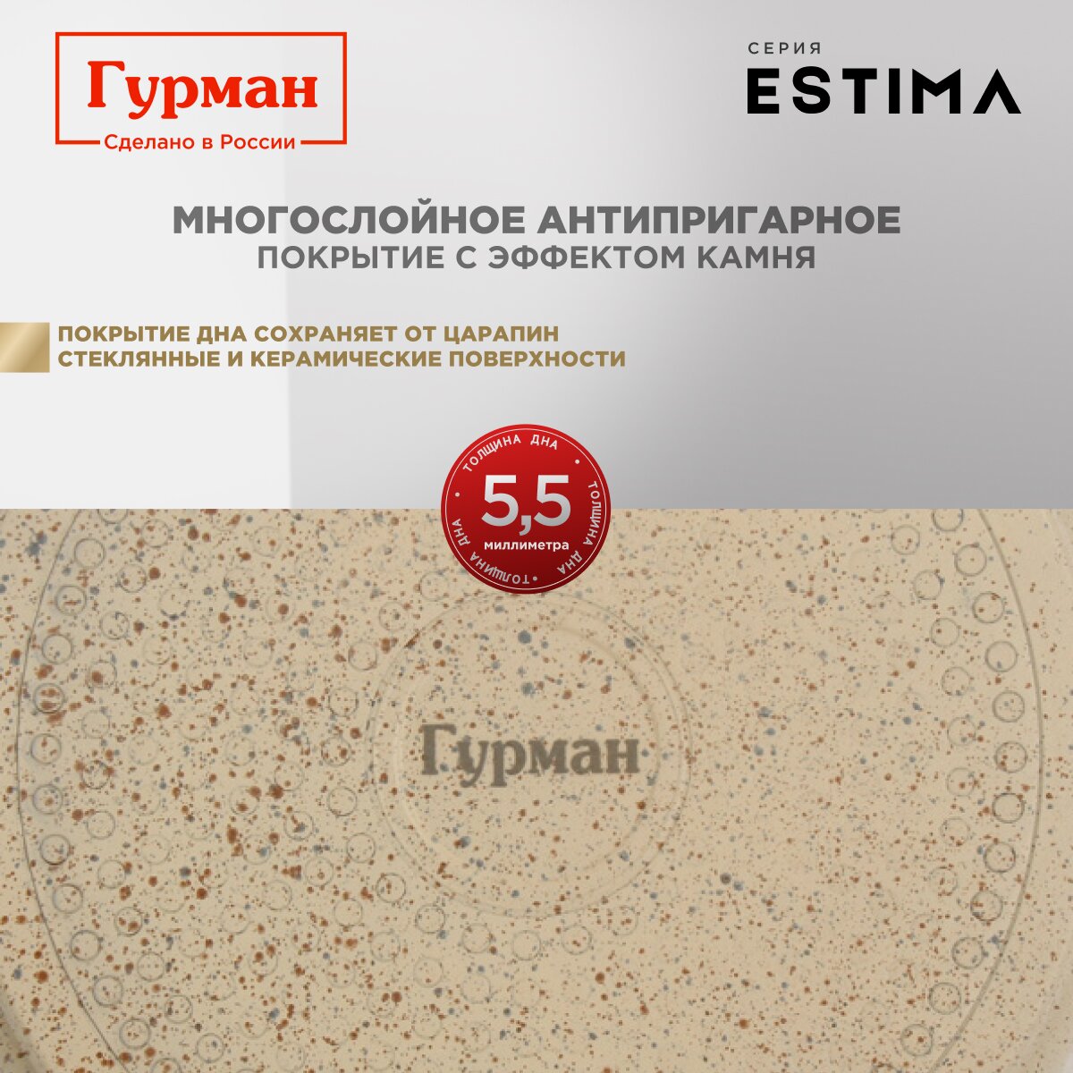 Кастрюля антипригарная 5 л Гурман Estima: идеальное решение для семьи и дачи — быстрое приготовление, прочность, подходит для индукции и других плит.