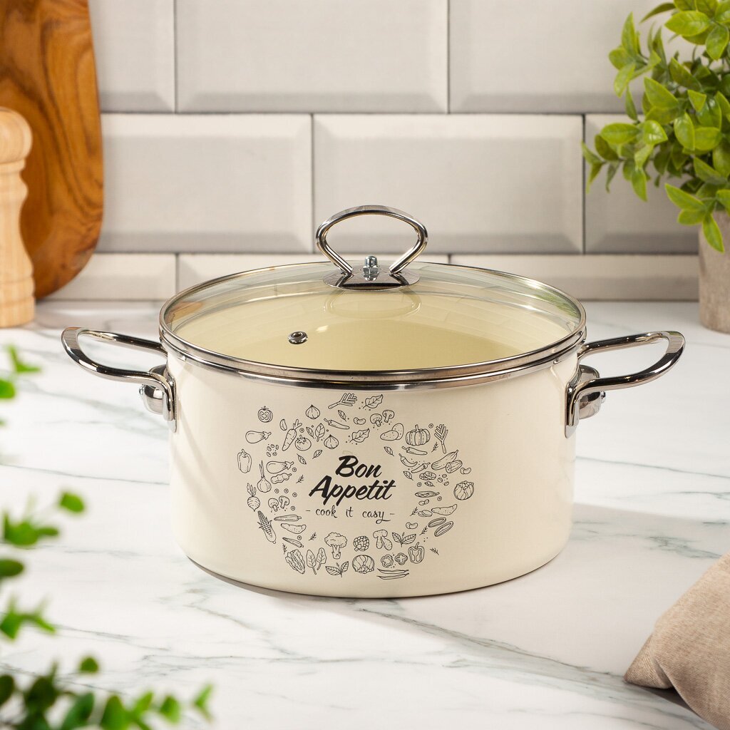 Эмалированная кастрюля Daniks Bon Appetit 4 л с крышкой — оптимальный выбор для индукции, дома и дачи: прочная, безопасная, универсальная.