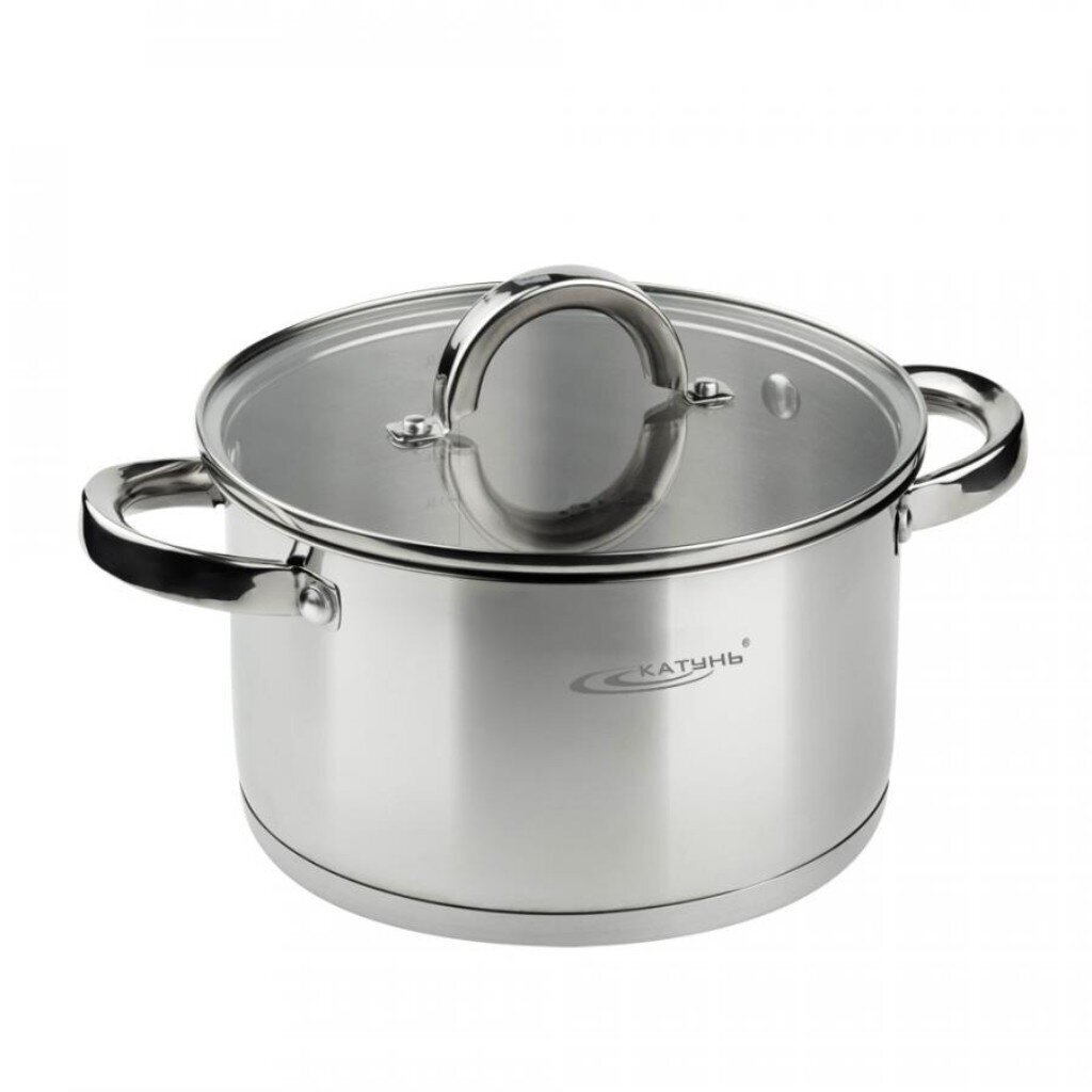 Кастрюля из нержавеющей стали 5.7 л Катунь Этна с капсульным дном и стеклянной крышкой — универсальное решение для дома и дачи, подходит для всех типов плит, включая индукцию.