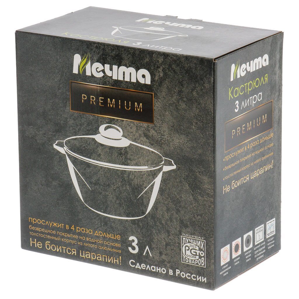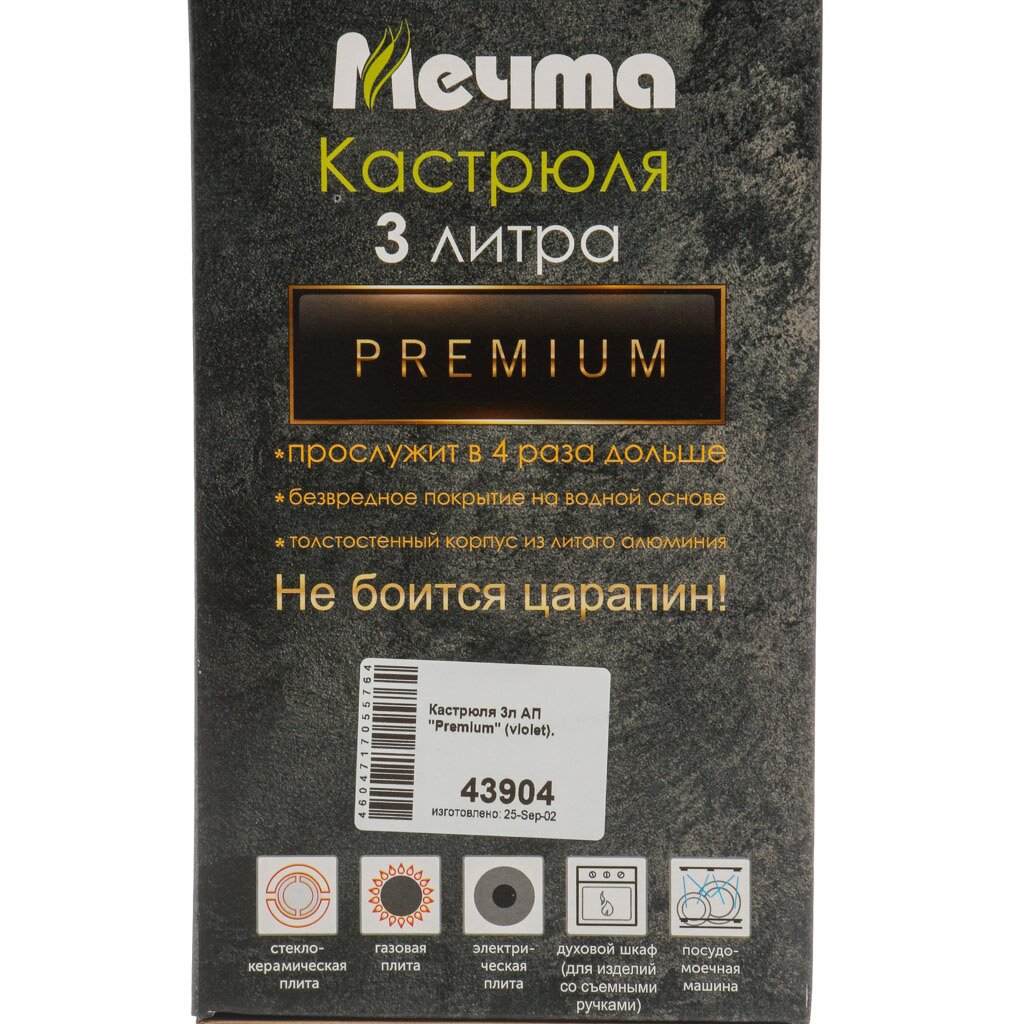 Кастрюля алюминий, антипригарное покрытие, 3 л, крышка стекло, Мечта, Premium violet, 43904