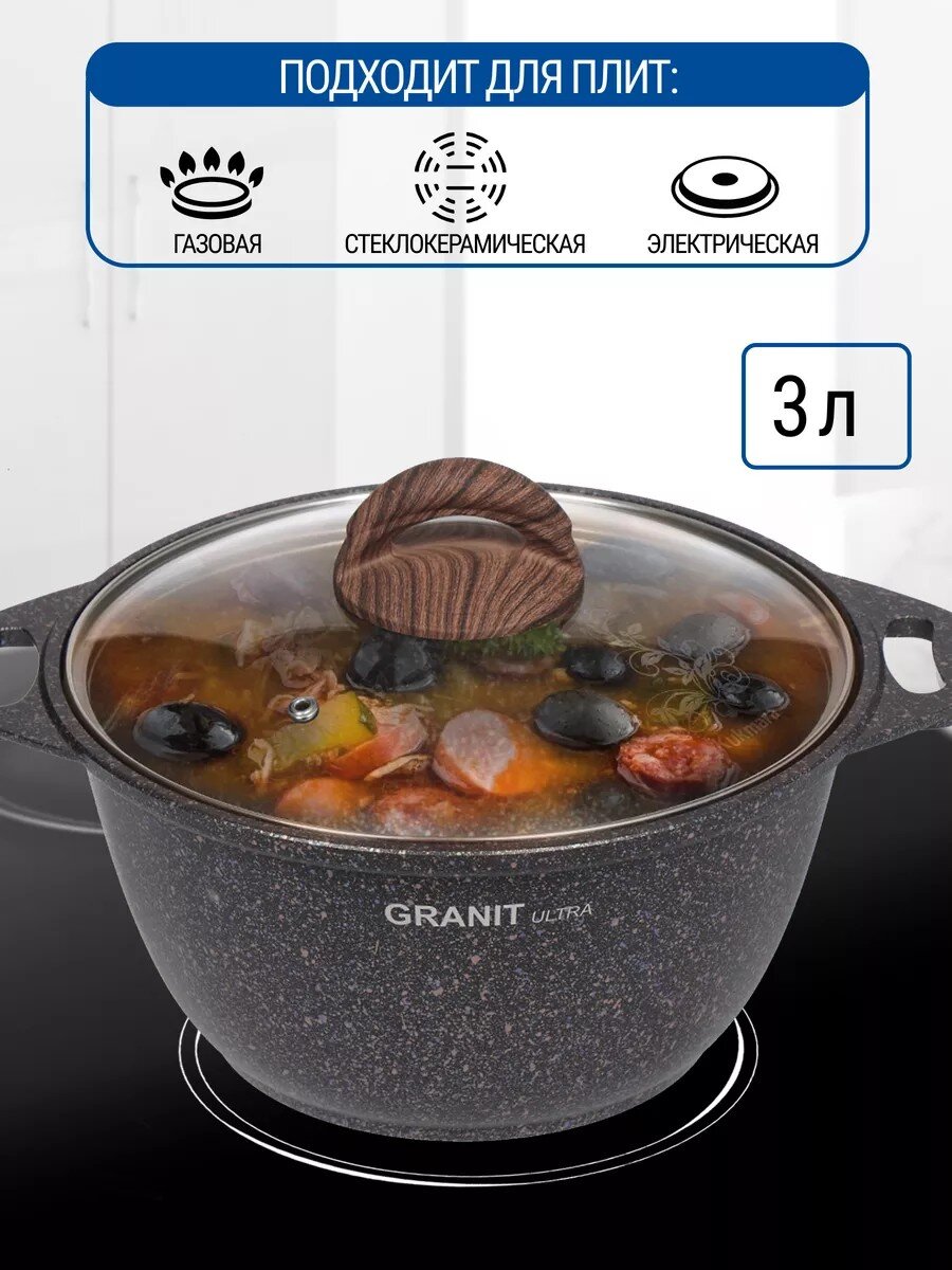 Закажите кастрюлю Kukmara Granit Ultra 3 л по выгодной цене — ваш надёжный помощник для здорового питания и быстрой готовки. Гарантия производителя 12 месяцев, доставка по России.