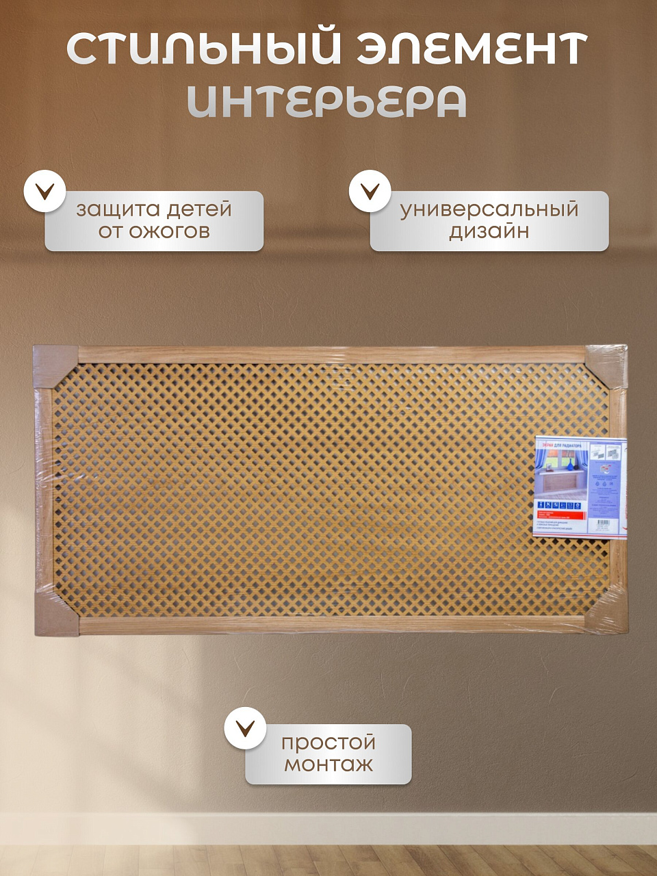 Декоративный экран изготовлен из МДФ, который не содержит вредных для здоровья веществ. Это особенно важно для людей с аллергией или семей с маленькими детьми. Обладает высокой устойчивостью к механическим повреждениям, влаге и высоким температурам, что обеспечивает его долговечность.