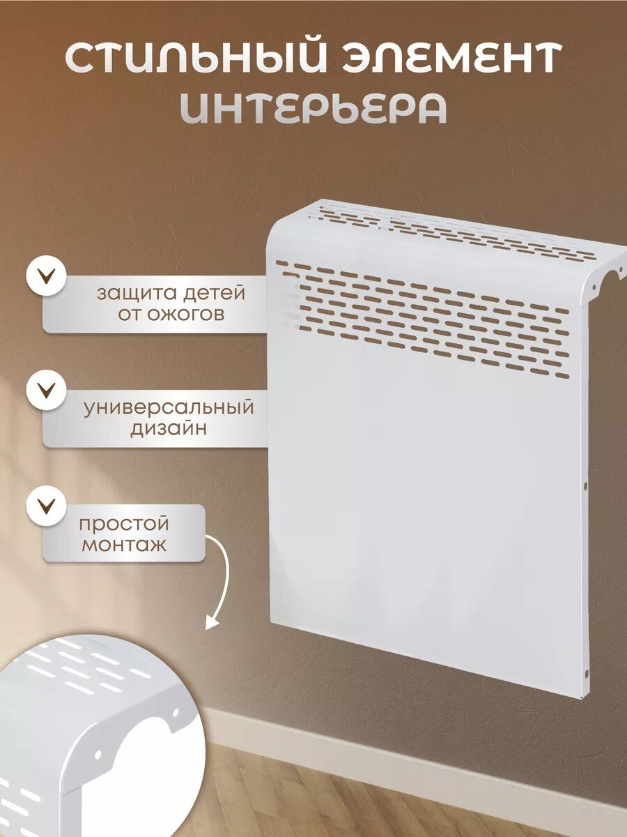 Металлический экран для радиатора - это функциональный и стильный элемент интерьера, который предназначен для защиты радиаторов отопления от пыли и грязи, а также для улучшения внешнего вида помещения. Конструкция очень просто монтируется и благодаря классическому цвету будет органично смотреться как в доме, так и в офисном пространстве.
