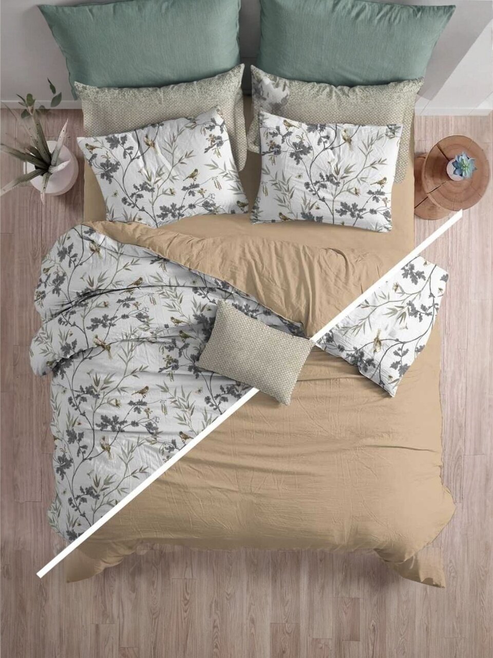 - Оптимальные размеры: простыня 215х240 см, пододеяльник 205х215 см, 2 наволочки 70х70 см — подходит для большинства евро-кроватей