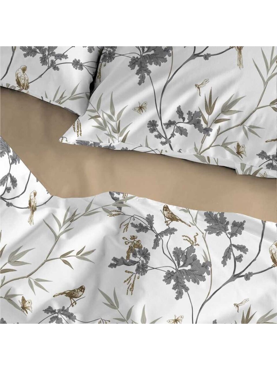 Простыня выполнена без резинки, пододеяльник — без застежки, что облегчает уход и увеличивает срок службы изделия.