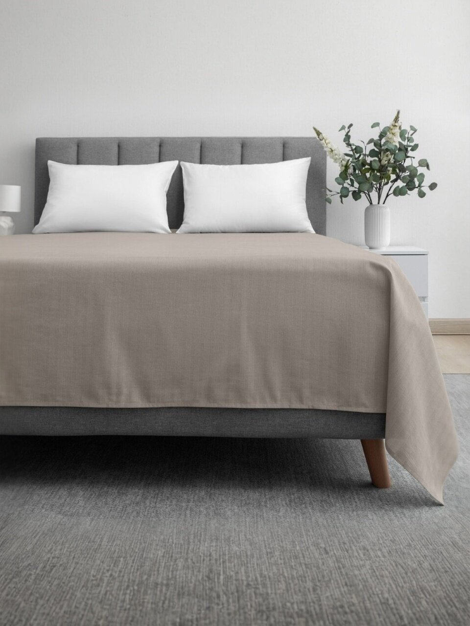 - Удобные размеры: простыня 220х240 см, пододеяльник 200х220 см, 2 наволочки 70х70 см — подходят для большинства евро-кроватей