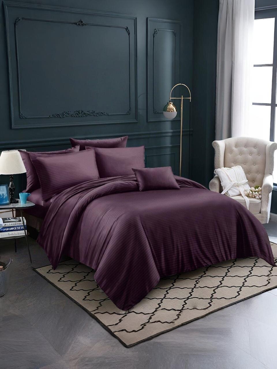 - Стильный однотонный комплект в трендовом фиолетовом цвете — актуальный выбор для современного интерьера