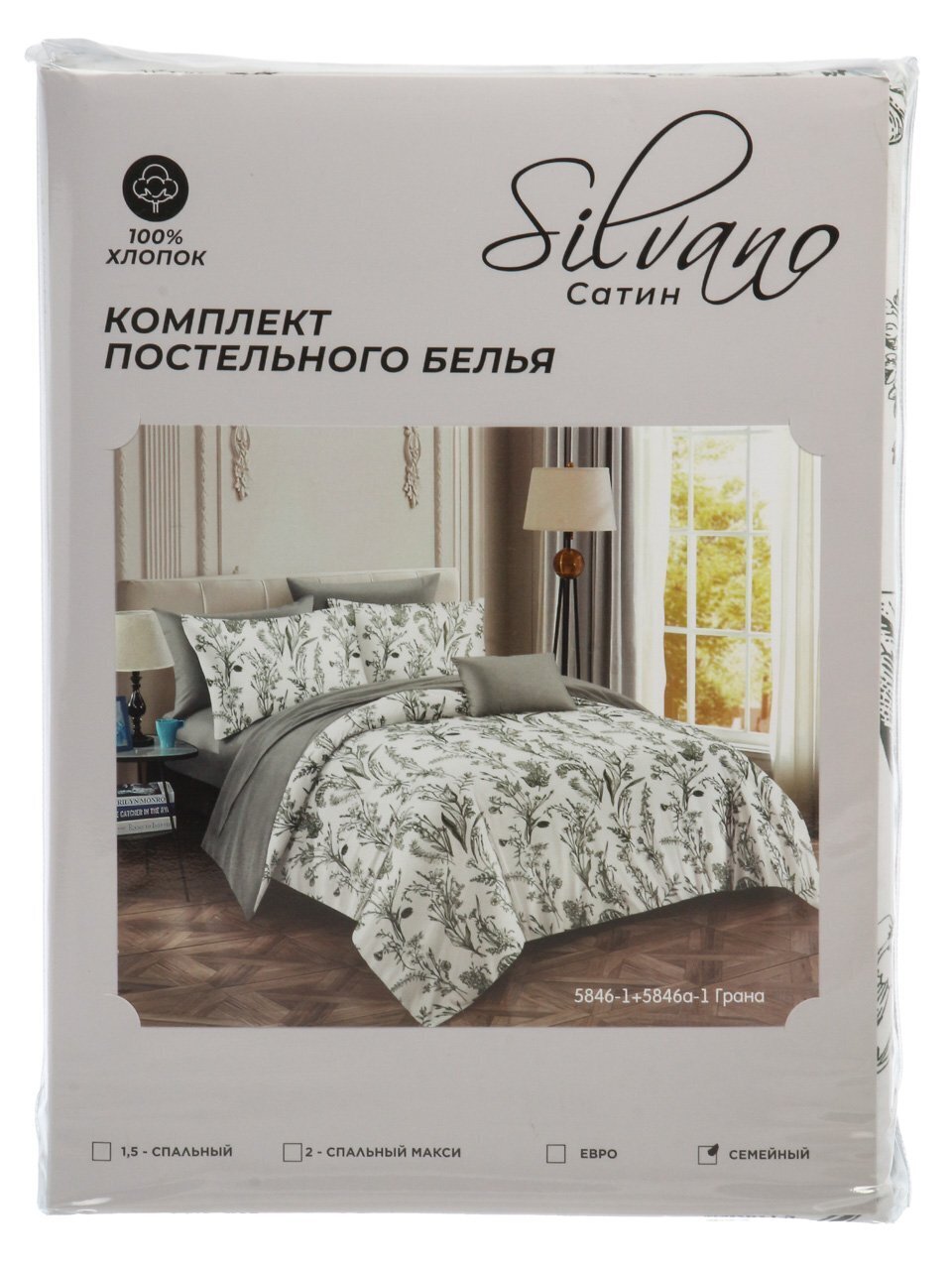Семейное постельное белье Silvano «Грана» из сатина: максимальный комфорт для двоих, натуральный хлопок, премиальный размер простыни 240х260 см, идеальный подарок.