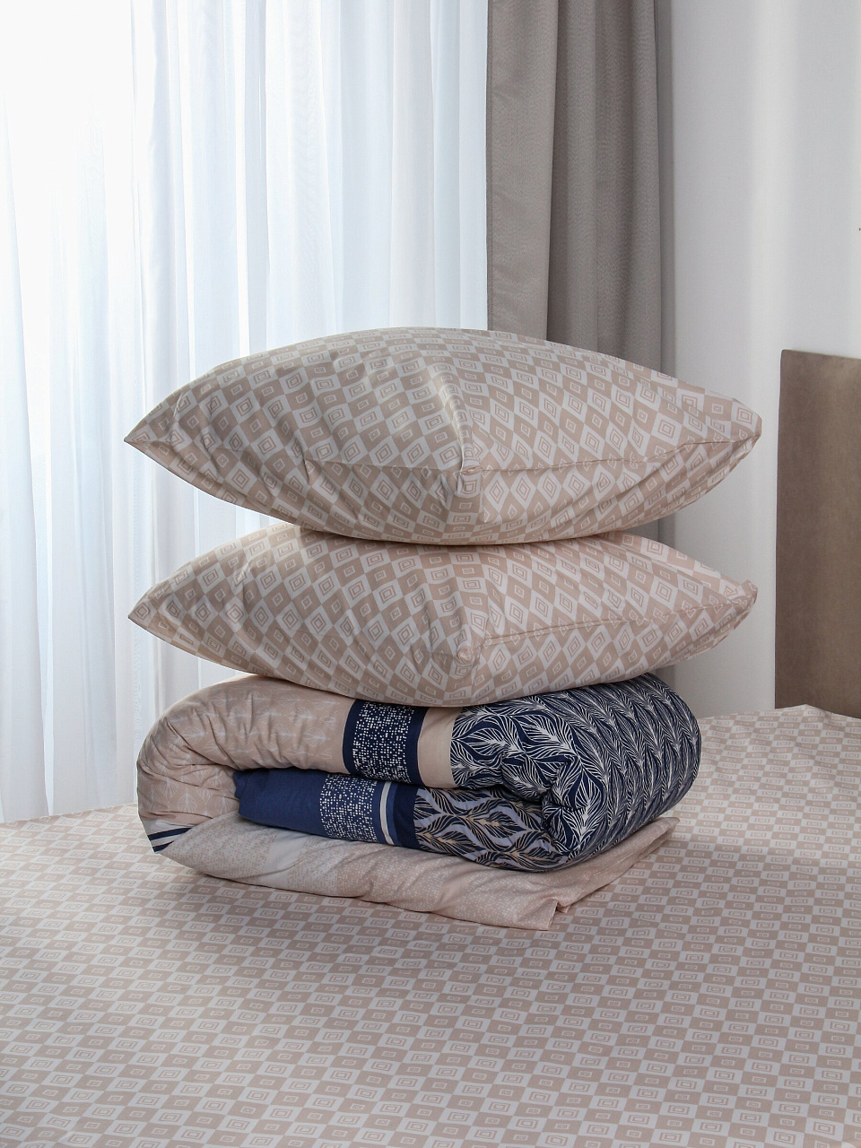 Комплект выполнен из 100% хлопкового поплина — плотной и долговечной ткани, которая хорошо держит форму, не вызывает раздражения и подходит для регулярного использования.
