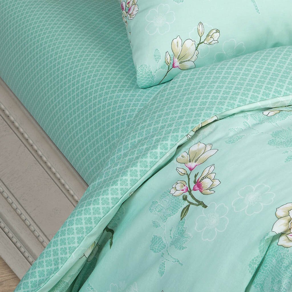 Постельное белье произведено из поплина — ткани из 100% натурального хлопка. Поплин эффективно удерживает тепло, впитывает влагу и позволяет телу дышать.