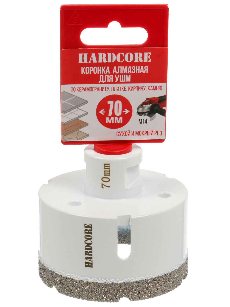 Да, коронка Hardcore с посадочным диаметром М14 специально разработана для работы с УШМ (болгарками). Подходит для сухого и влажного реза, обеспечивает аккуратное сверление без сколов.