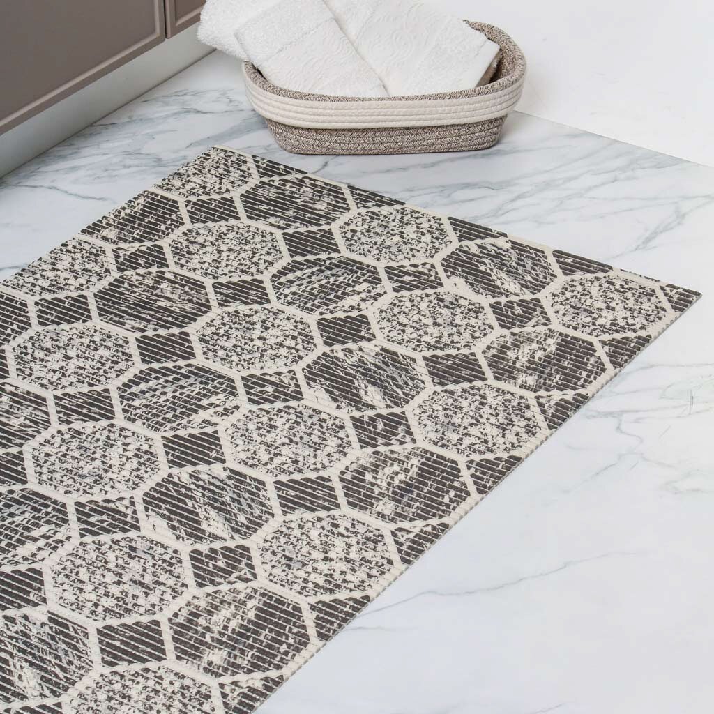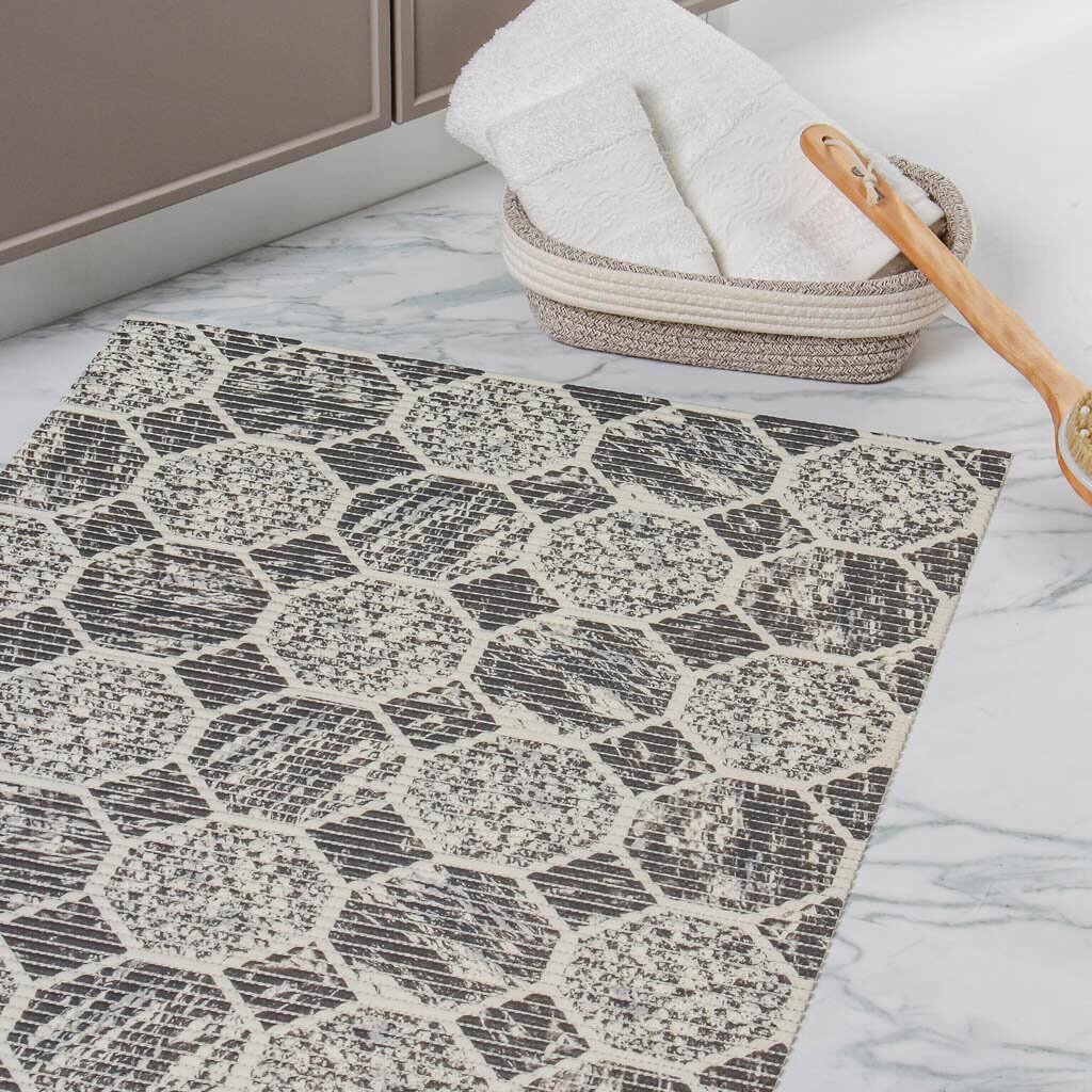 Коврик для ванной, антискользящий, 0.65х15 м, вспененный ПВХ, соты серый, Homemat Aquatic, 119B