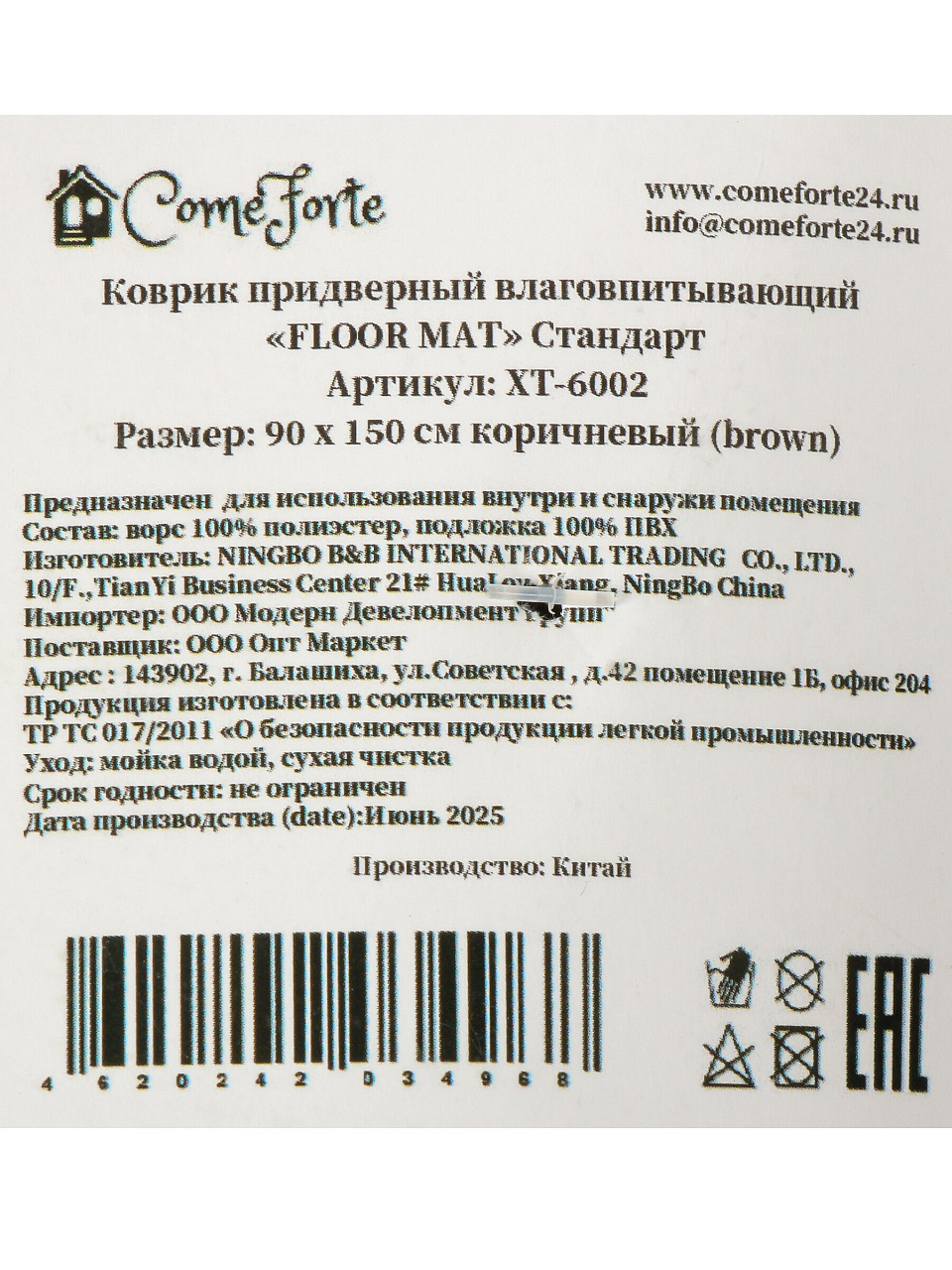Вы можете приобрести «Коврик грязезащитный, 90х150 см, прямоугольный, резина, с ковролином, коричневый, Floor mat Комфорт, ComeForte, ХТ-6002» и другие товары в нашем интернет-магазине в Обнинске по низким ценам и с бесплатным самовывозом.