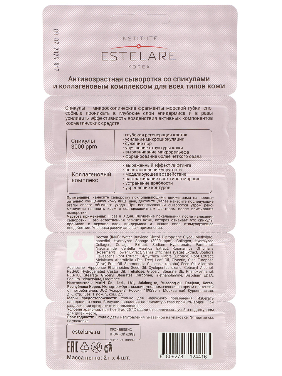 Сыворотка для лица, Institute Estelare, со спикулами и коллагеновым комплексом, 8 г