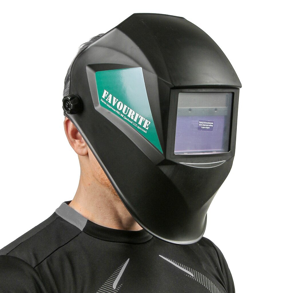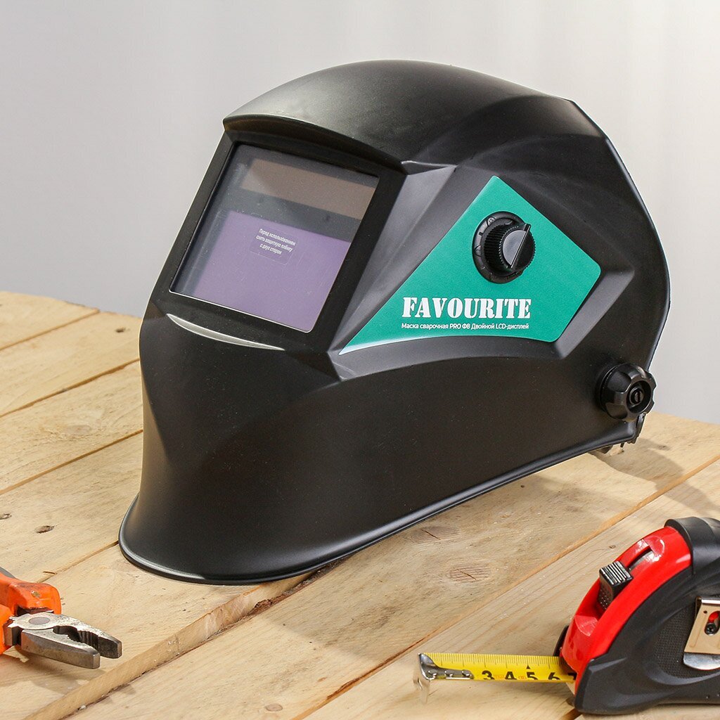 Маска сварочная автозатемнение Favourite Хамелеон PRO Ф8: защита глаз 24/7, точная настройка затемнения 3/4-8/9-13 DIN, ударопрочный корпус — для уверенной работы на любом объекте.