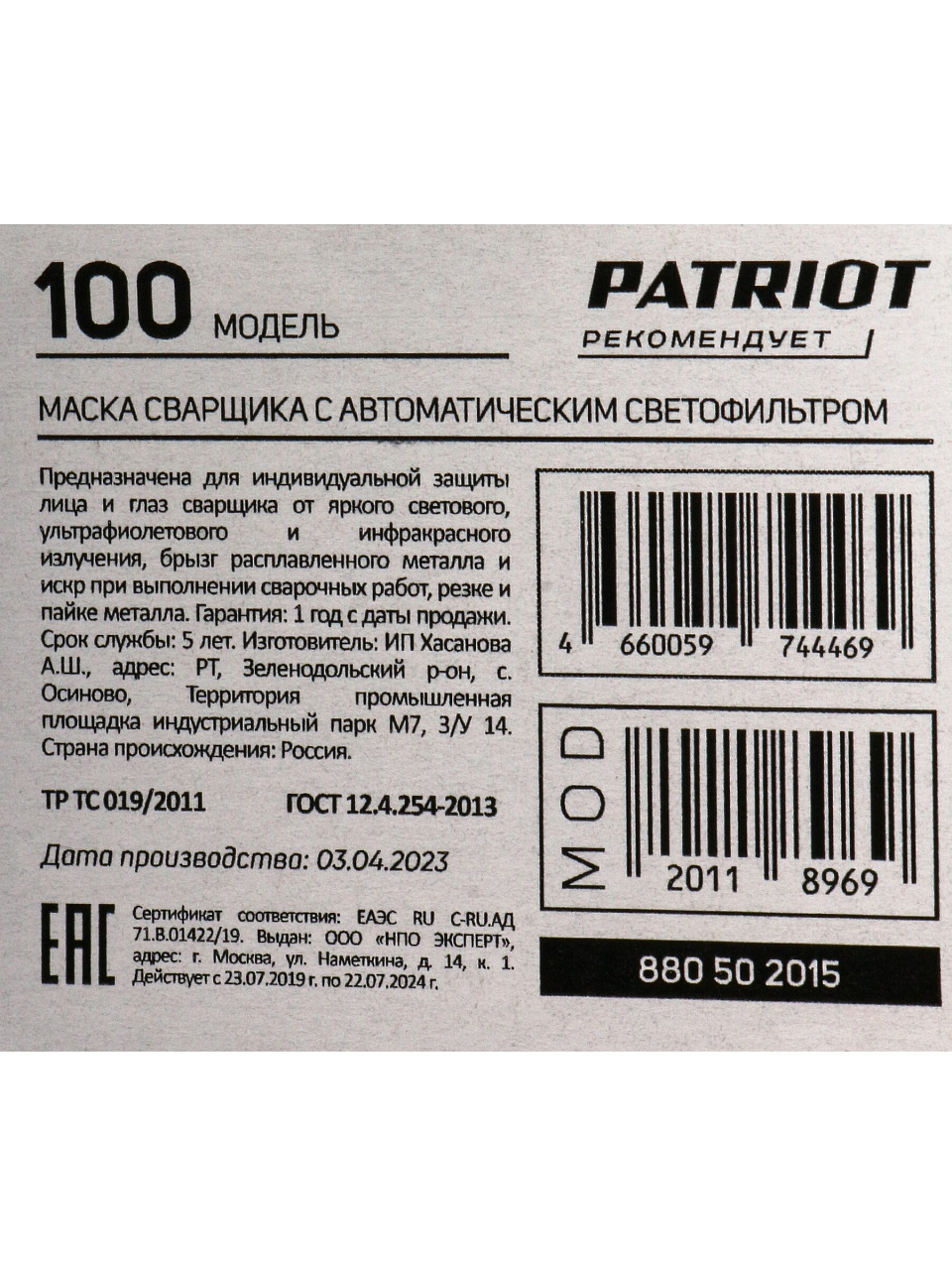 Закажите маску сварочную хамелеон Patriot 100 — получите быструю доставку по России и гарантию качества. Надёжная защита ваших глаз — по доступной цене.