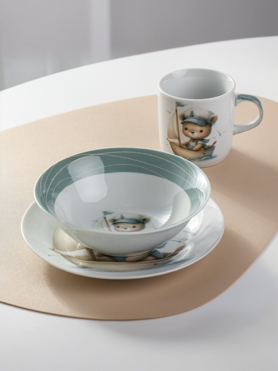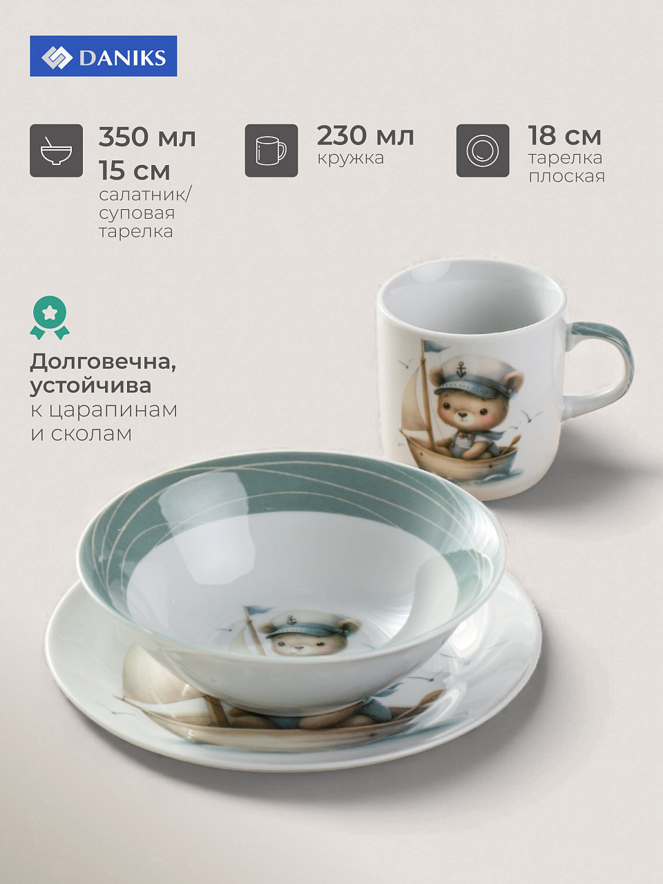 Набор керамической посуды Daniks «Смелый капитан», 3 предмета: идеальный подарок для мальчика, безопасен для СВЧ и посудомоечной машины, яркий дизайн.