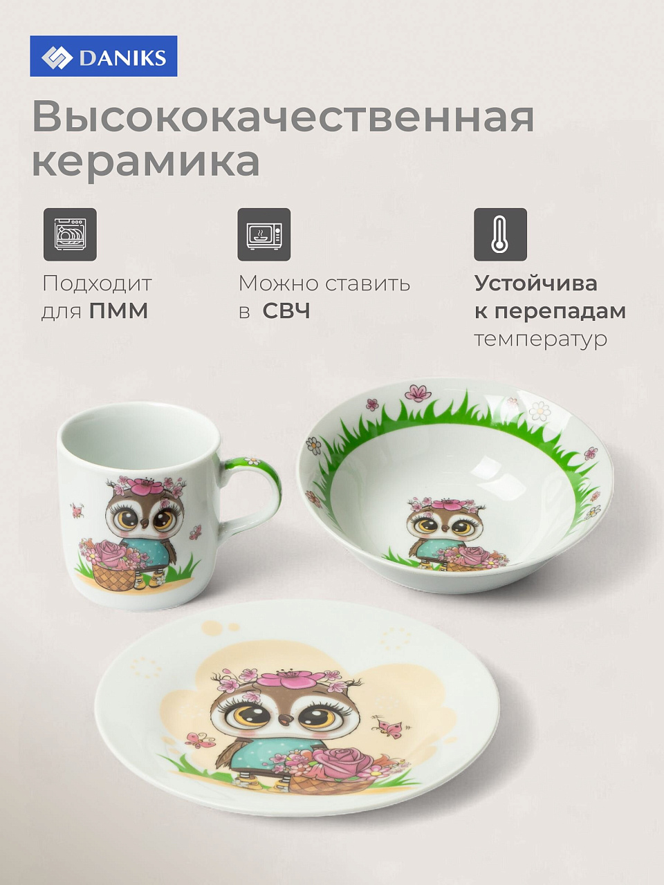 Вы можете приобрести «Набор посуды керамика, 3 шт, Цветочная сова, тарелка 18см, салатник 15см/350мл, кружка 230мл, Daniks, C640» и другие товары в нашем интернет-магазине в Тамбове по низким ценам и с бесплатным самовывозом.